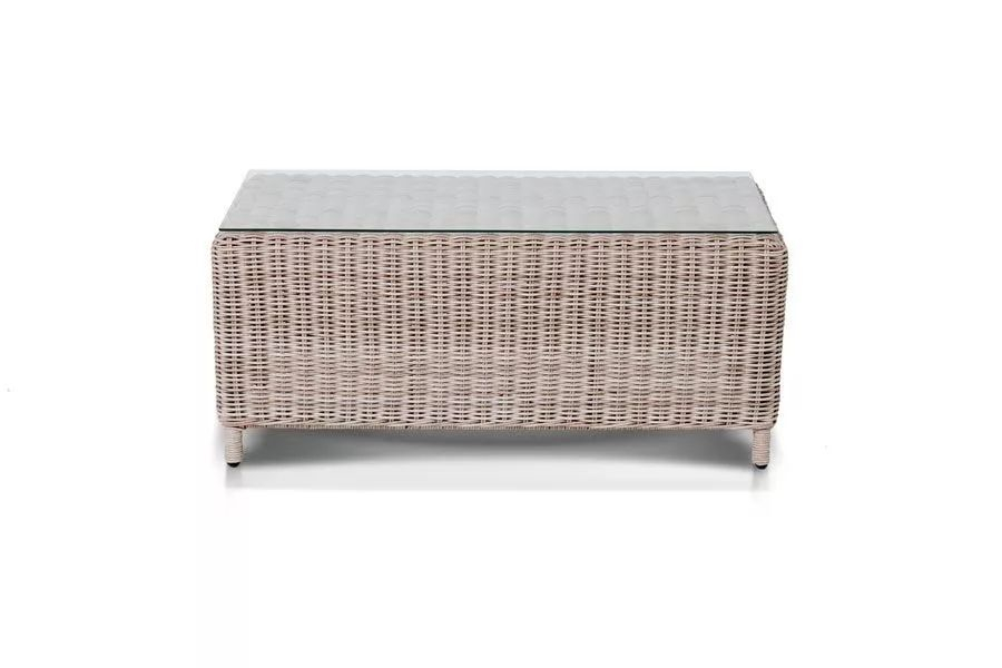Журнальный столик Кон Панна из высококачественного и неприхотливого искусственного ротанга подходит для эксплуатации при различных погодных условиях. Модель оснащена прочным каркасом, изготовленным из алюминия. В роли рабочей поверхности выступает столешница из стекла, отличающаяся высокими эксплуатационными свойствами. Декоративной составляющей является ручная круглая оплетка.
