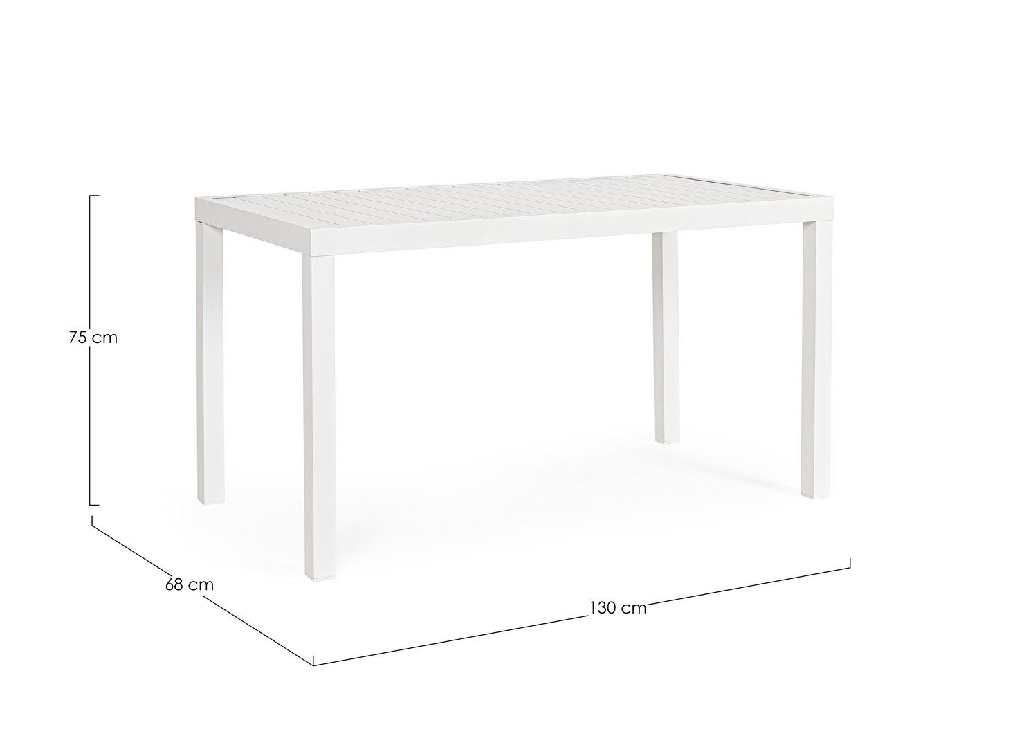 Стол полностью выполнен из алюминия с порошковым покрытием (полиэстер), что обеспечивает устойчивость и долговечность конструкции.