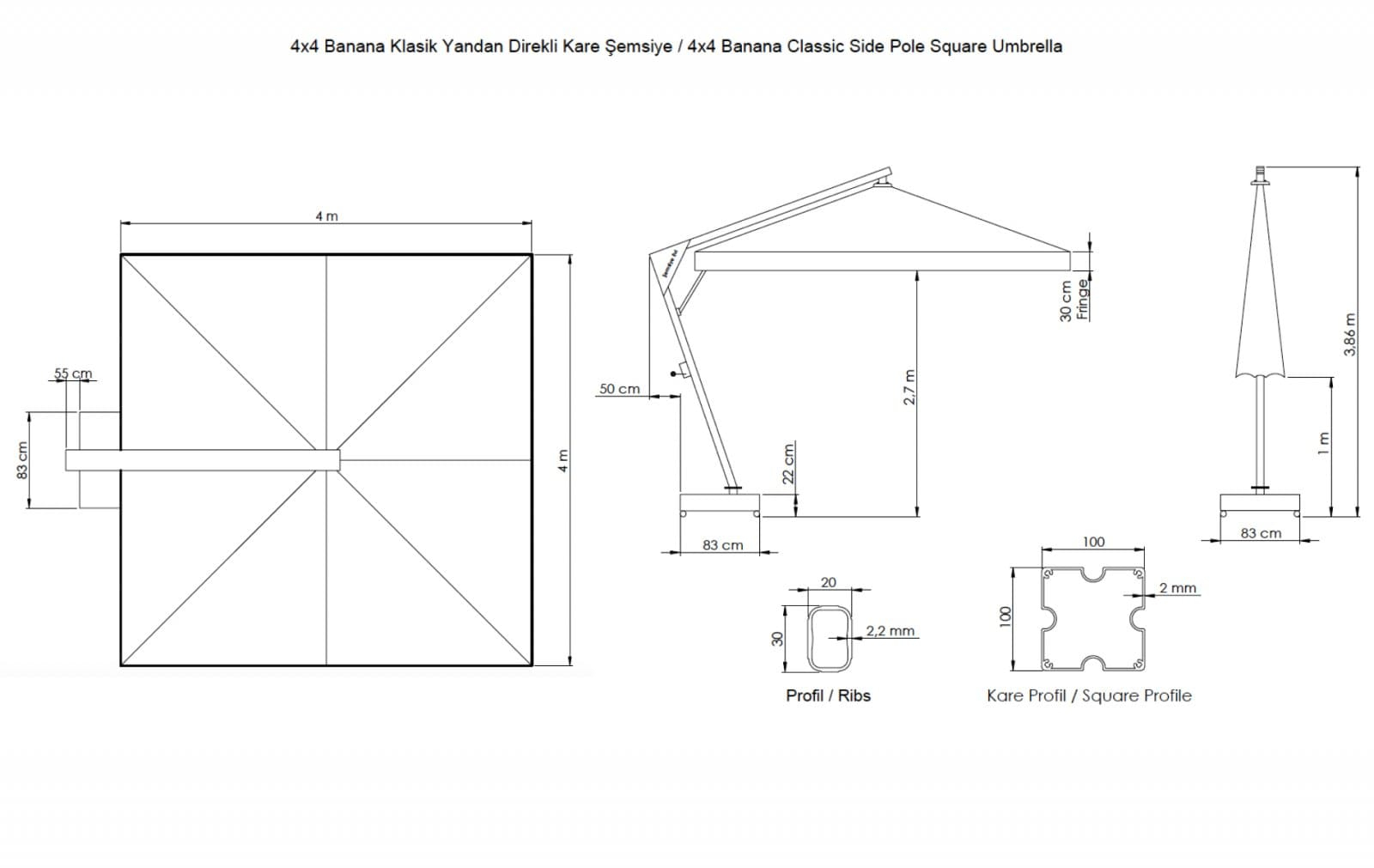 + 2 размера       Зонт профессиональный 4х4 м Mega Telescopic THEUMBRELA SEMSIYE EVI, Турция, 4000х4000 мм