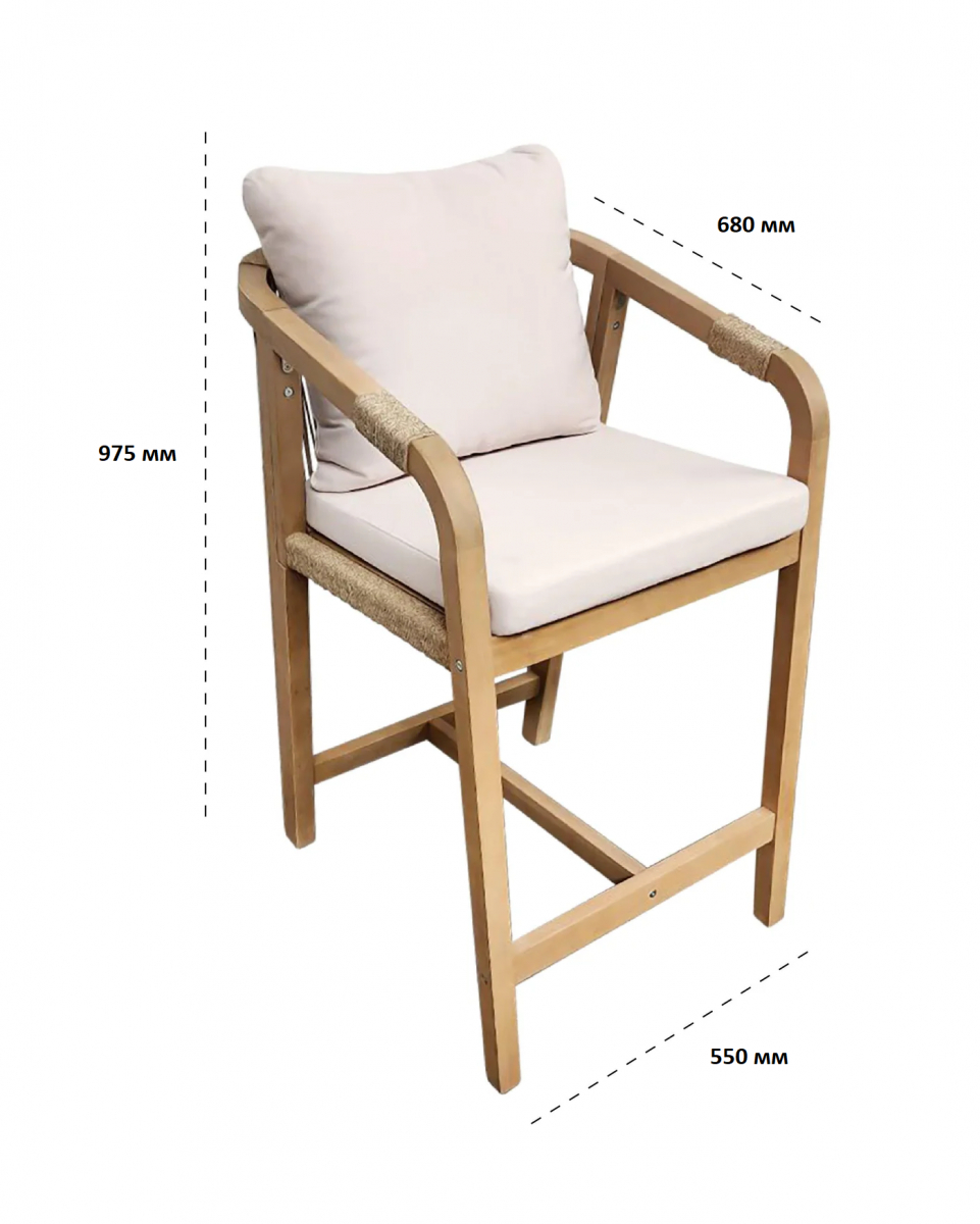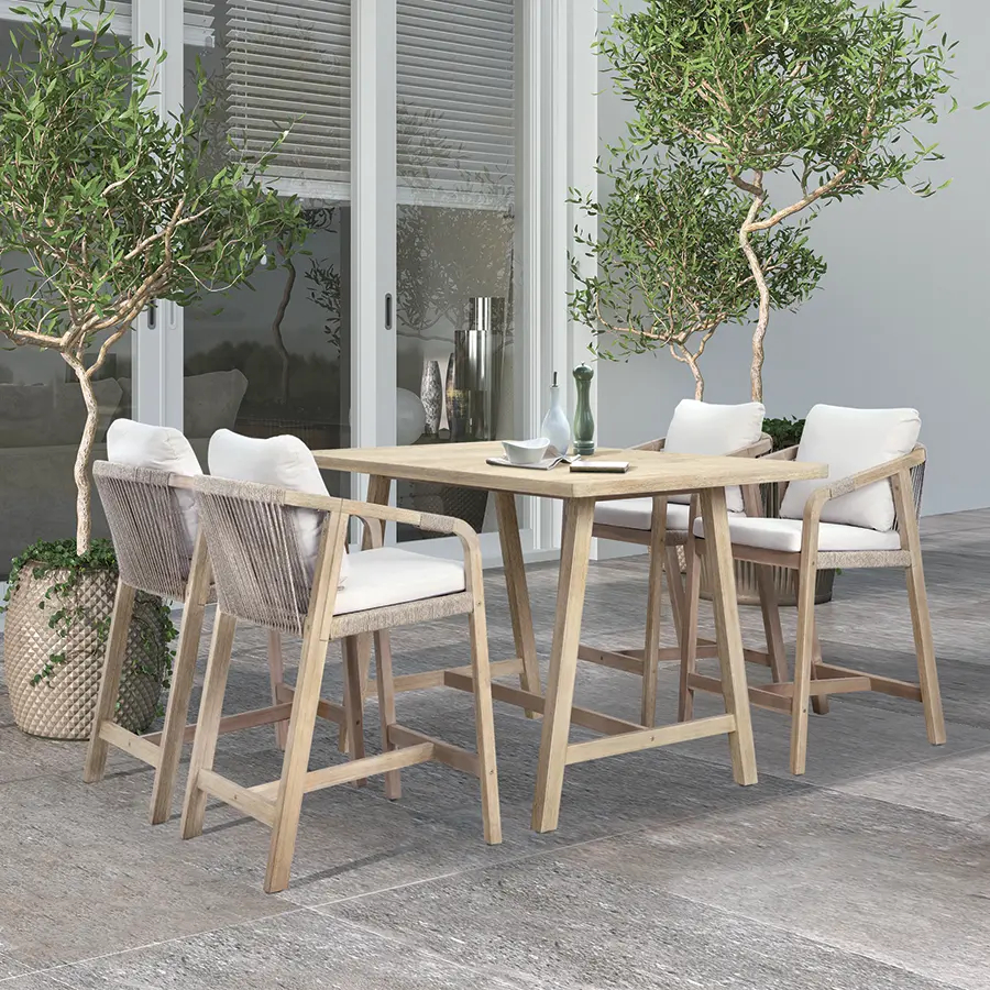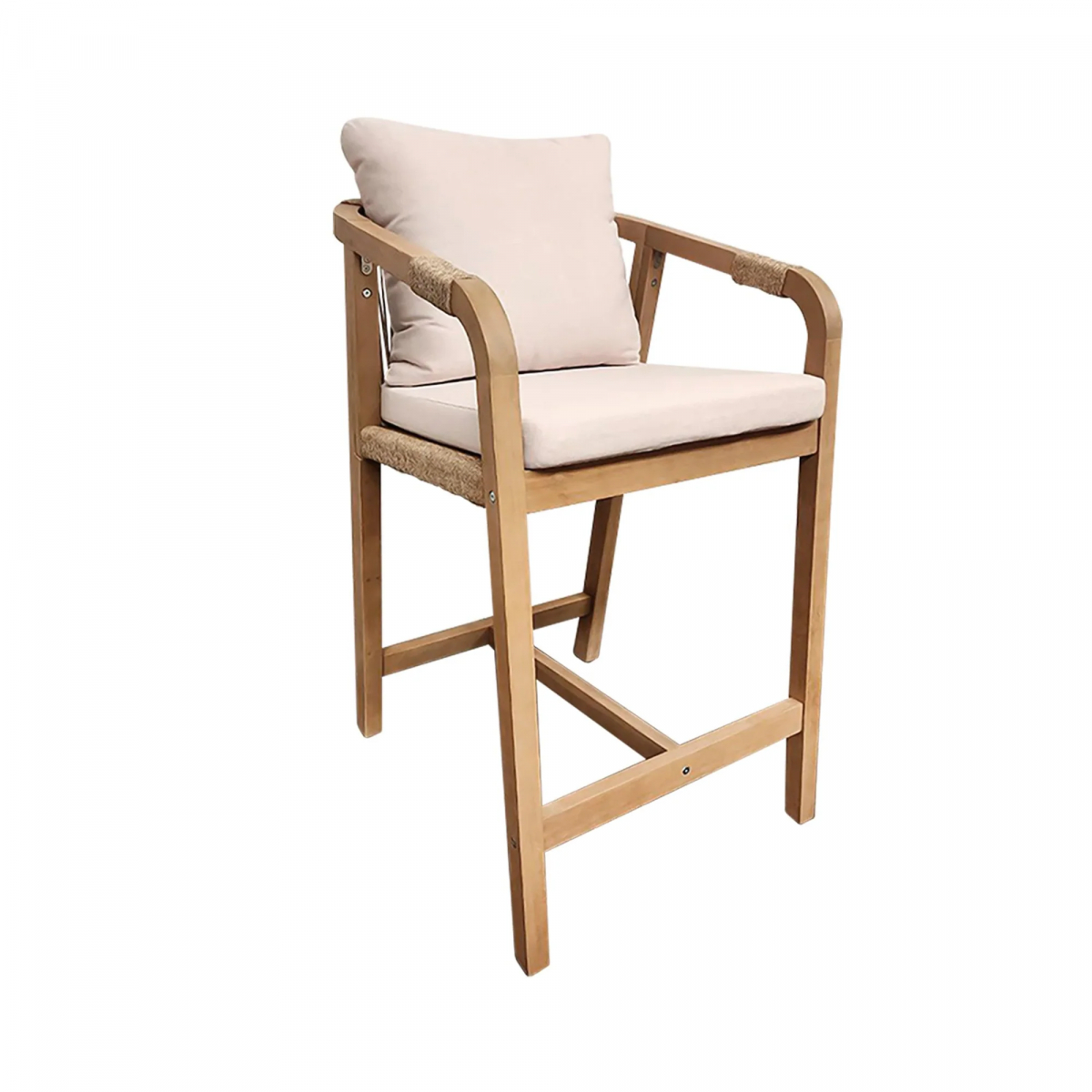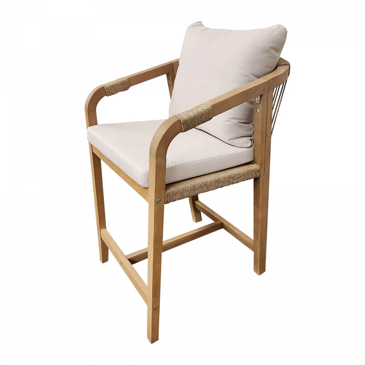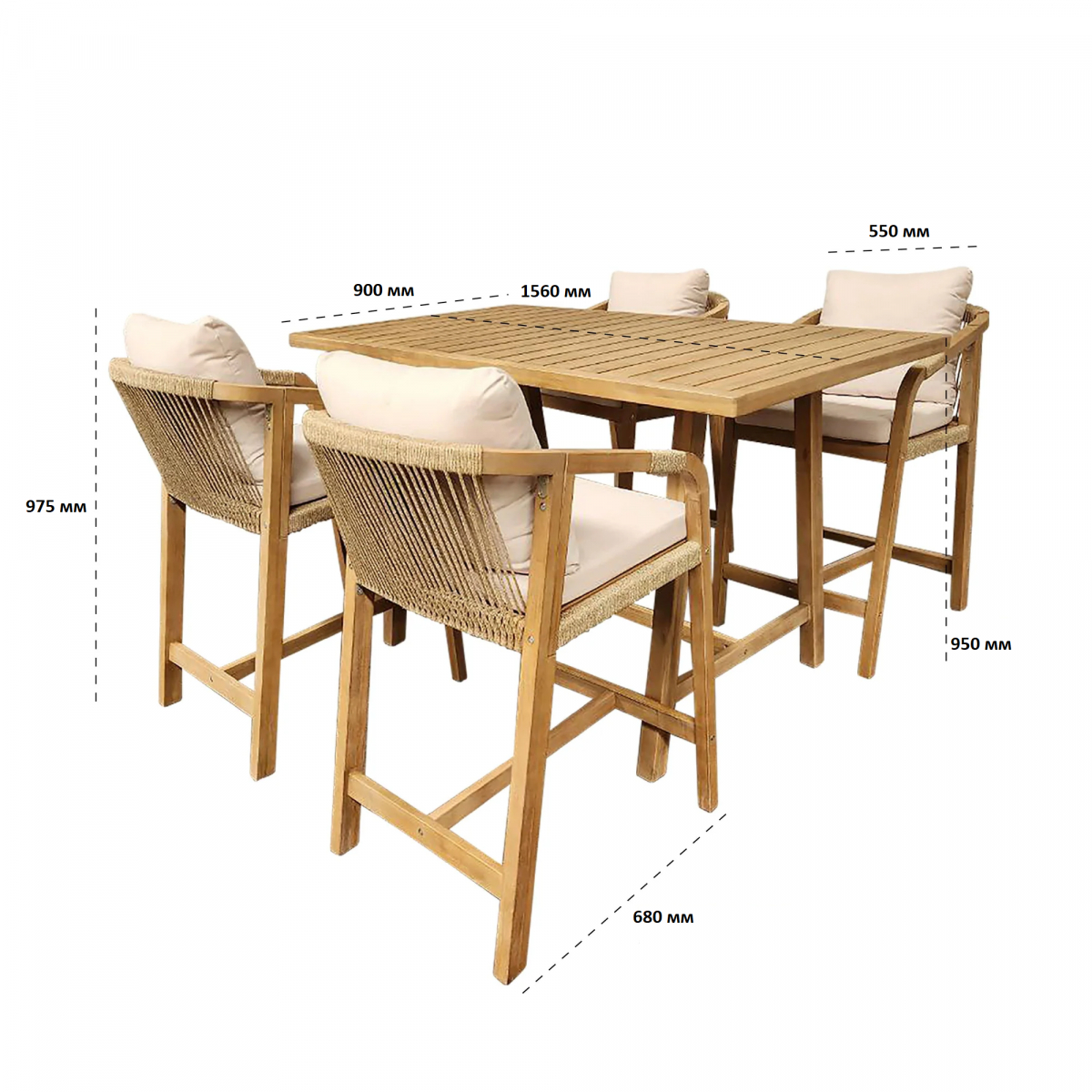 Барная группа Rimini, рассчитанная на 4 персоны, - это садовая мебель из АКАЦИИ в современном стиле. Дизайнерские формы мебели из этой коллекции создадут стильный и узнаваемый облик зоны отдыха на вашей веранде. Rimini - это современная коллекция садовой мебели, выполненная в комбинации натурального веревочного плетения роуп, акации и бежевых подушек. Цвет натуральной твердой древесины представляет собой натуральный цвет с мелкой текстурой, придающий древесине приятный теплый вид. Rimini - это стиль и элегантность на Вашей веранде.