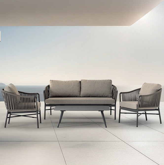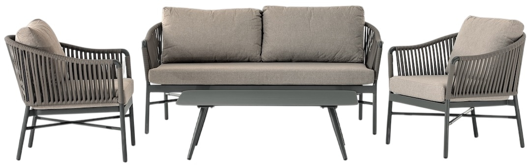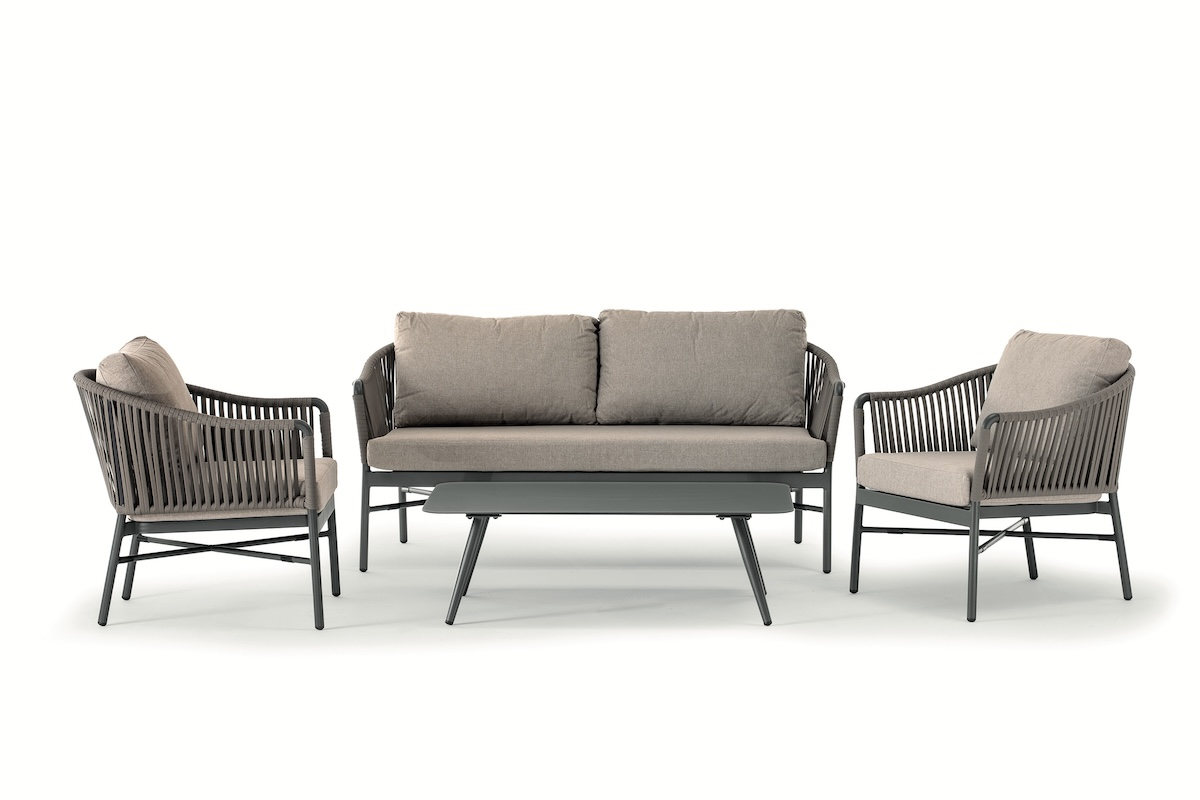 Monaco - это современный садовый комплект, который состоит из двухместного дивана, двух кресел и журнального столика. Алюминиевый каркас с оплеткой из полиолефинового роупа, мягкие подушки со съемными чехлами из олефина, устойчивого к загрязнениям и ультрафиолетовому излучению - всё это создает стильную зону отдыха на открытом пространстве.