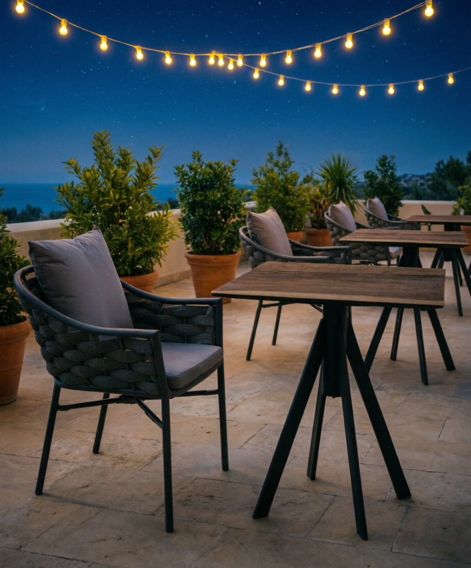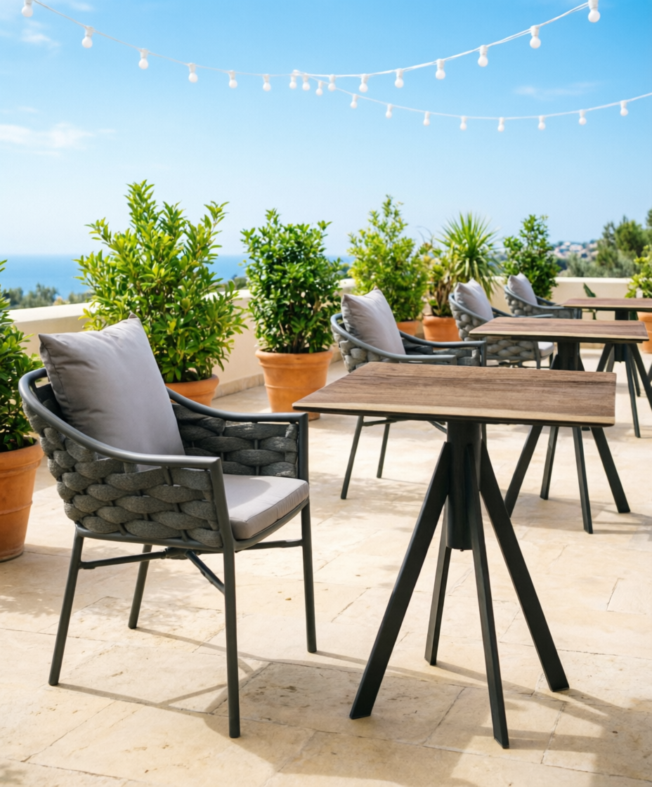 Обеденное кресло Torino привлекает внимание и, несомненно, украсит любое открытое пространство. Уличное кресло с эргономичным и современным дизайном с алюминиевым каркасом и спинкой в плетении из роупа. Модель подходит для открытой террасы бара, ресторана, отеля или небольшого частного зимнего сада.