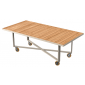 Коллекция Vineyard представляет собой коллекцию садовой мебели из алюминия и дерева в деревенском и теплом стиле. Разработанный Рамоном Эстеве, чтобы предложить минималистичное решение для открытых пространств, обеденный стол имеет прочную и долговечную конструкцию. Контраст между тиком и окрашенным металлом, а также колеса придают обеденному столу уникальную эстетику.