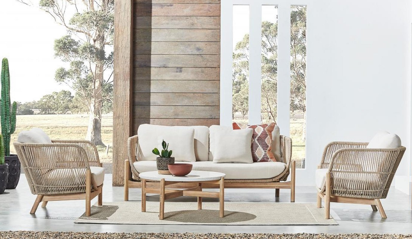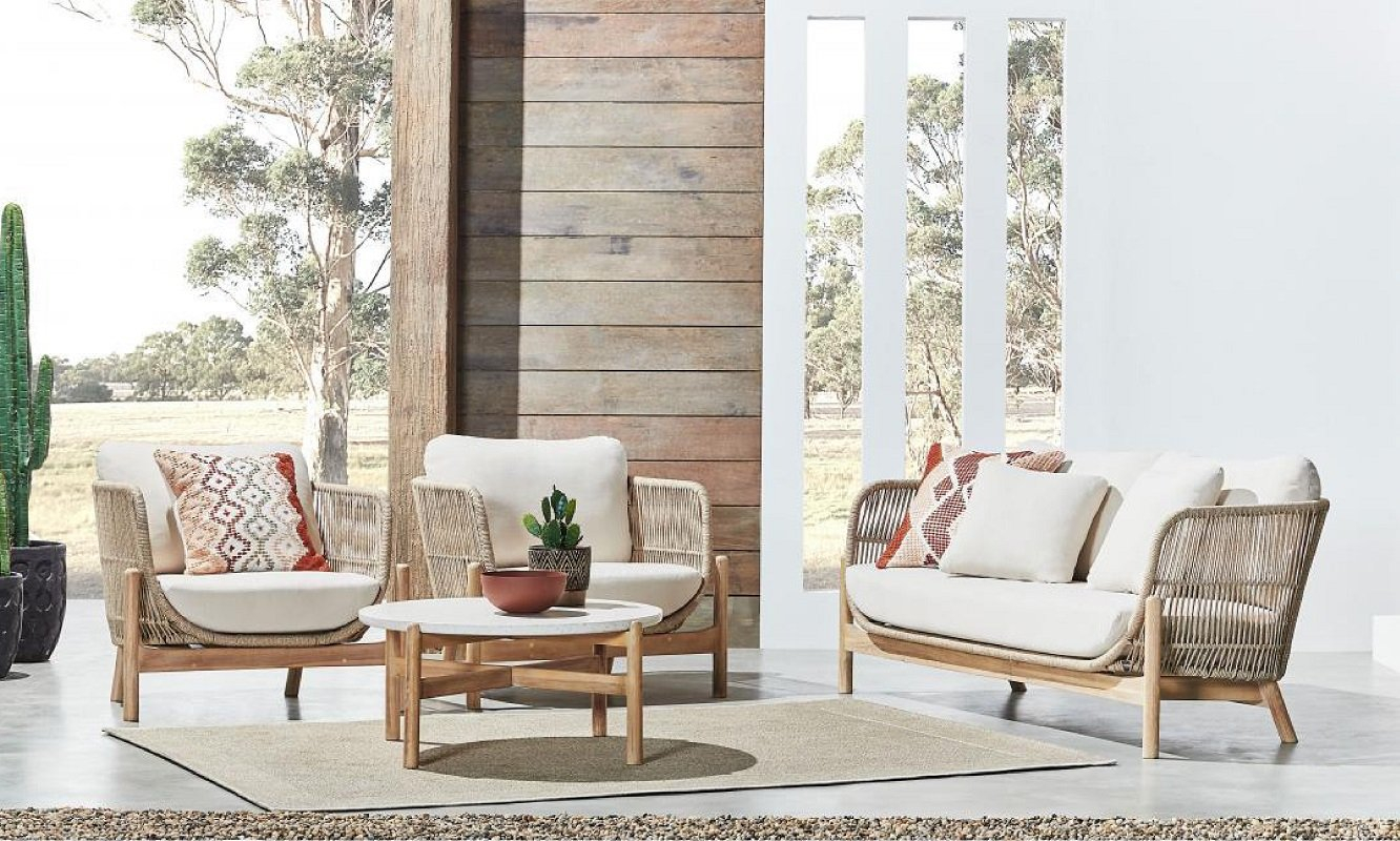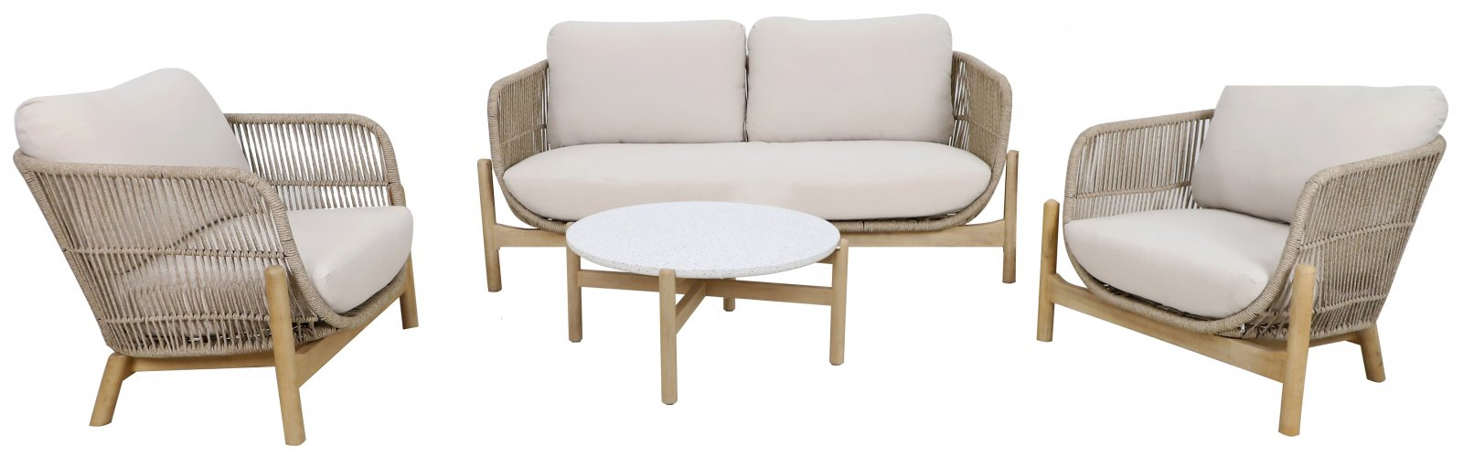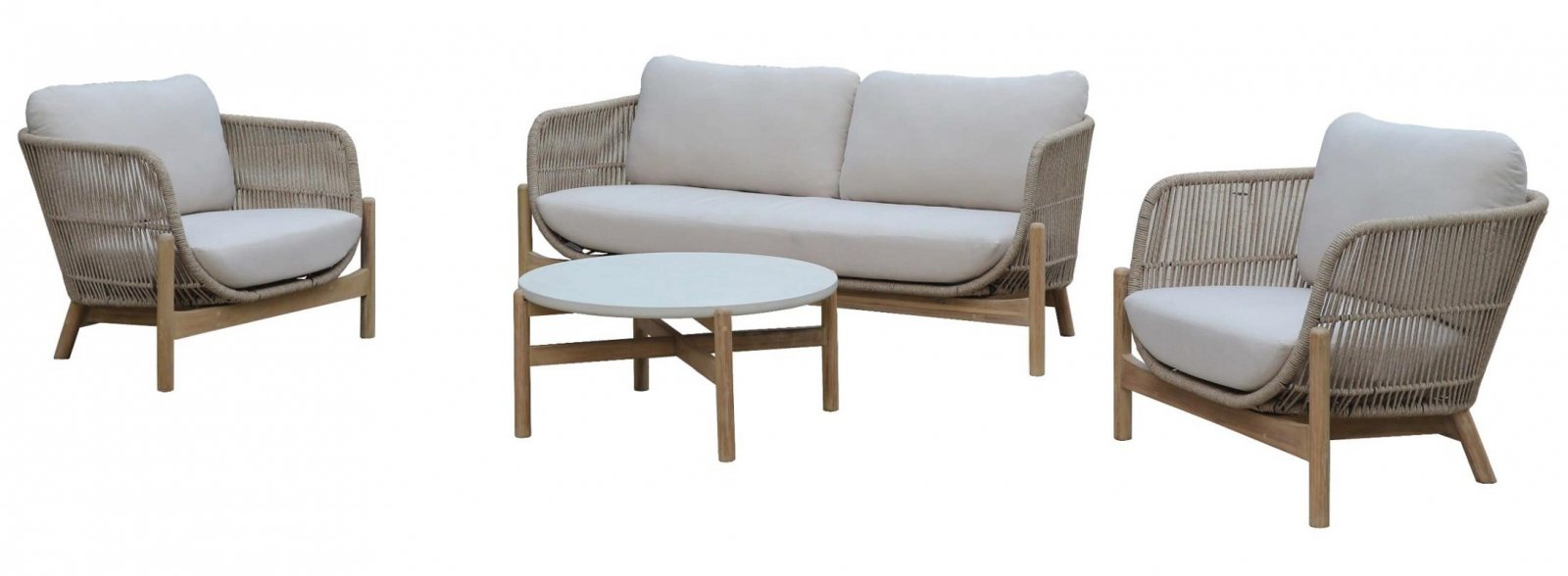 Talara - это современная коллекция садовой мебели из акации, выполненная в комбинации натурального веревочного плетения роуп, акации и светлых подушек. Цвет натуральной твердой древесины представляет собой натуральный цвет с мелкой текстурой, придающий древесине приятный теплый вид.