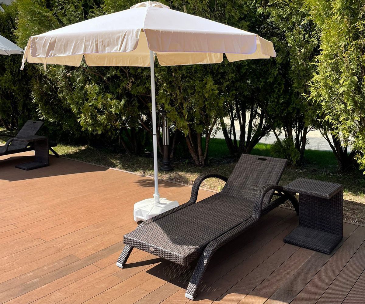 Это больше, чем зонт, с его эстетичным и стильным внешним видом, простотой открытия и закрытия, долговечностью и дополнительными функциями, такими как журнальный столик и пепельница.