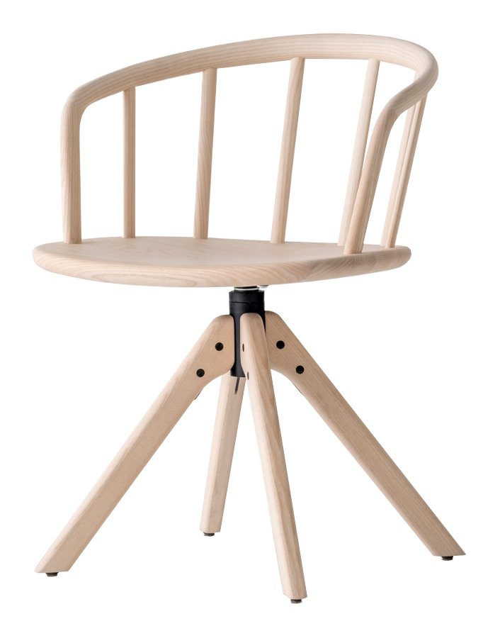 Деревянное кресло Nym обладает интересным дизайном и богатым функционалом. Оно представлено с каркасом в виде 4 ножек, соединяющихся вверху, и корпусом, верхняя часть которого образует арку, плавное переходящую в сиденье и подлокотники. Поворотный механизм дает возможность вращаться на 360 градусов, что делает модель очень удобным решением для офисов или залов ожидания. Стильное и современное изделие придаст дружелюбный и гостеприимный характер любому интерьеру за счет теплоты древесины.