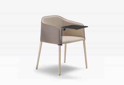 Стилистическая простота определяет кресло Laja. Модель дополнена столиком-пюпитром, который позволяет изделию максимально адаптироваться к рабочим пространствам. Кресло с деревянными ножками, сиденьем, образованным перекрещивающимися эластичными ремнями, погруженными в пенополиуретан, и упругой удобной спинкой. Обивка может быть изготовлена из кожи или разнообразных тканей, а широкая цветовая гамма позволяет создавать модели в спокойном монохромном стиле или же в ярком контрастирующем дизайне.