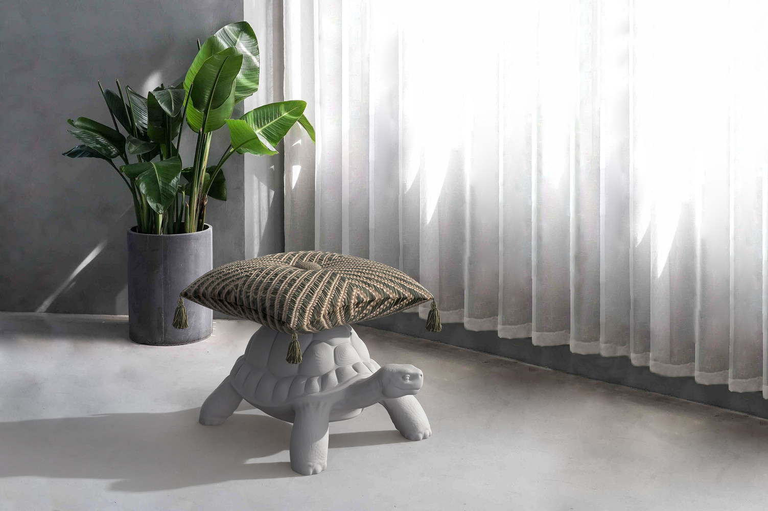 Оригинальный пуф Turtle Carry, разработанный Marcantonio Raimondi Malerba, - это уникальный и привлекательный предмет, который обязательно заметит себя в любом доме. Этот пуф в форме черепахи, изготовленный из высококачественного полиэтилена, имеет мягкую подушку на панцире, предлагая универсальный вариант сиденья, который также можно использовать в качестве подставки для ног или дополнительной полки. Доступный в двух элегантных цветах - белом и черном - этот пуф станет стильным и функциональным дополнением любого внутреннего пространства. Независимо от того, являетесь ли Вы поклонником черепах, пуф Turtle Carry создан для Ваших минут отдыха!