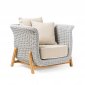 Кресло из серии Zante изготовлено на прочной тиковой основе и вручную сплетено из веревки Rehau высочайшего качества. Внутренний каркас изготовлен из алюминия, окрашенного эпоксидной порошковой краской. Изысканные и обволакивающие линии, очень высокое качество материалов, тонкий баланс между дизайном и традицией, между классическими закругленными формами и игрой материалов делают это садовое кресло Zante дизайнерским продуктом, подходящим для обустройства как внутренних, так и внешних пространств. Как и другие изделия фабрики RosaDesign, оно не боится непогоды и перепадов температуры благодаря сертифицированному плетению волокна.