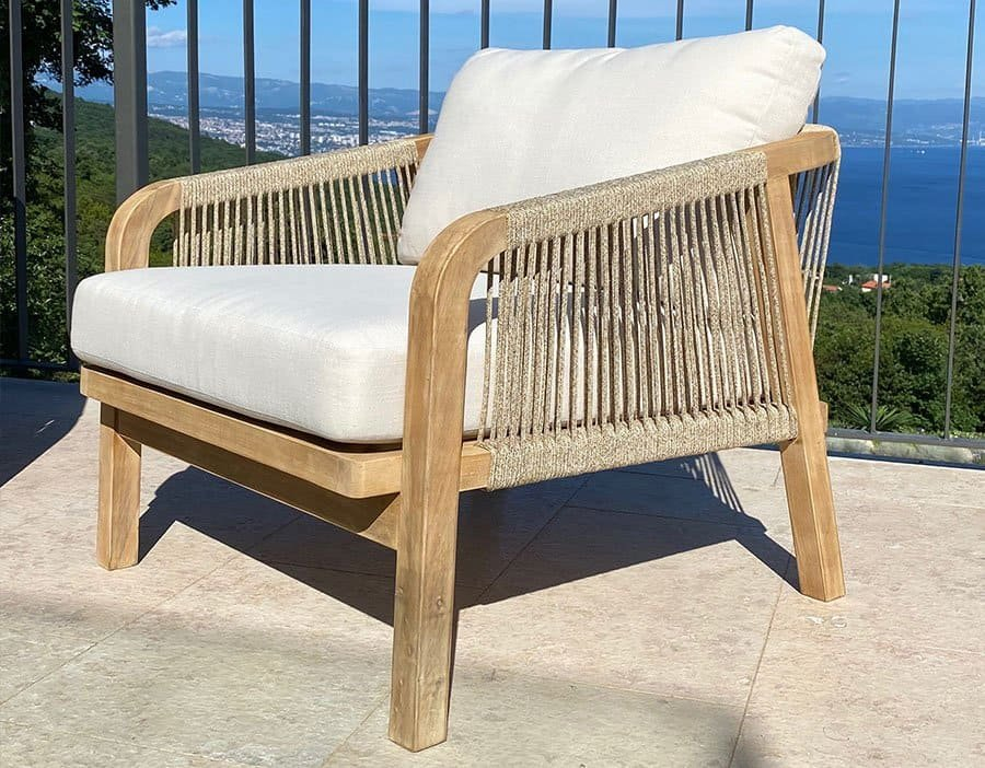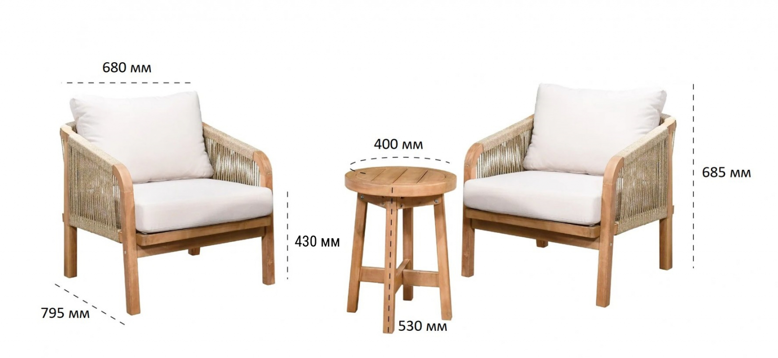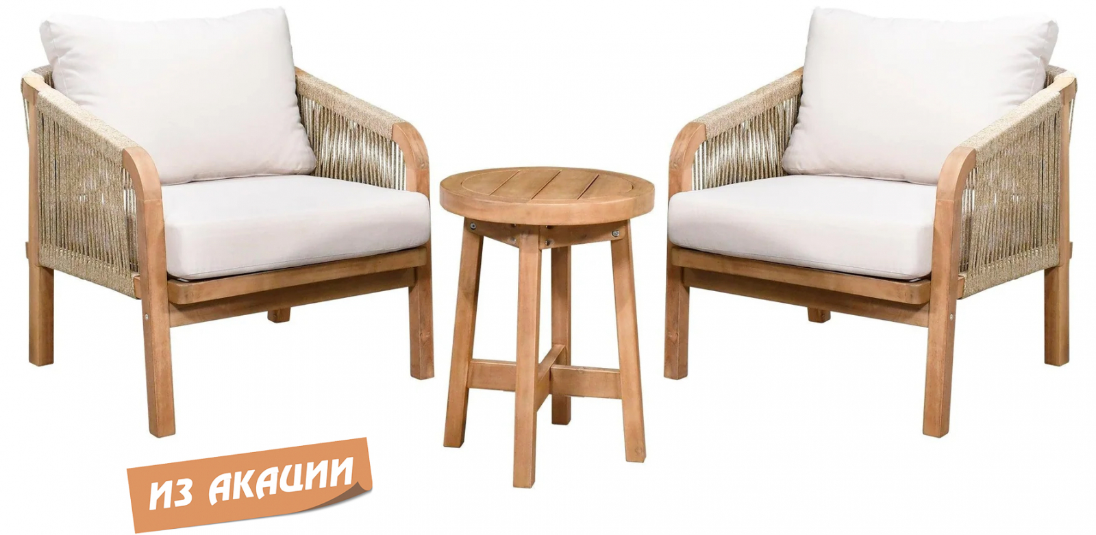 Лаунж группа Ravona, рассчитанная на 2 персоны, - это садовая мебель из АКАЦИИ в современном стиле. Дизайнерские формы мебели из этой коллекции создадут стильный и узнаваемый облик зоны отдыха на Вашей веранде. Ravona - это современная коллекция садовой мебели из акации, выполненная в комбинации натурального веревочного плетения роуп, акации и бежевых подушек. Цвет натуральной твердой древесины представляет собой натуральный цвет с мелкой текстурой, придающий древесине приятный теплый вид. Ravona - это стиль и элегантность на Вашей веранде.