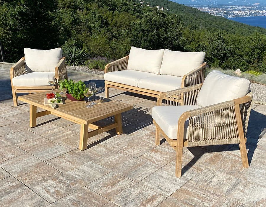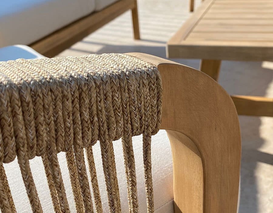 Ravona - это современная садовая коллекция из АКАЦИИ, выполненная в комбинации натурального веревочного плетения роуп, акации и бежевых подушек. Цвет натуральной твердой древесины представляет собой натуральный цвет с мелкой текстурой, придающий древесине приятный теплый вид. Ravona - это стиль и элегантность на Вашей веранде.