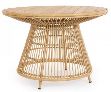 Круглый обеденный стол Adelma превосходно украсит разнообразные открытые площадки. Яркой изюминкой изделия является высококлассное плетение из синтетических волокон, которое обвивает каркас. Решетчатый дизайн основной конструкции придает модели легкость и изящность, а тиковая столешница делает изделие более мягким и гостеприимным.