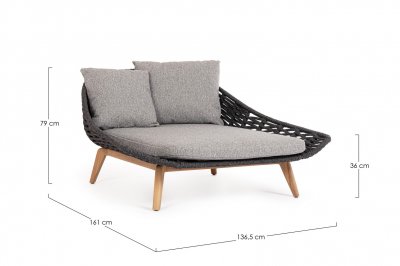 В коллекцию Tamires входит еще один элемент, создающий уникальную обстановку, способствующую максимальному расслаблению. Лаунж-лежак, как и вся мебель этой серии, представлен на деревянных ножках и с плетенным корпусом. Он отлично подойдет для обстановки зон отдыха на летних площадках. Высококлассные материалы, гармоничное сочетание мягких и комфортных подушек, плетения и деревянного каркаса придают изделию необычайно привлекательный внешний вид.