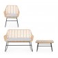 Плетеный комплект лаунж мебели Burrel с удобными подушками на сиденьях станет отличным выбором для обустройства летних площадок на свежем воздухе. Набор разработан для комфортного размещения четырех человек и создания уютной обстановки, располагающей для приятного времяпрепровождения в кругу друзей и близких. Каркас всей мебели представлен в виде полозьев из стали, что обеспечивает максимальную устойчивость и надежность. Плетение натурального цвета придает набору необыкновенную теплоту и легкость.