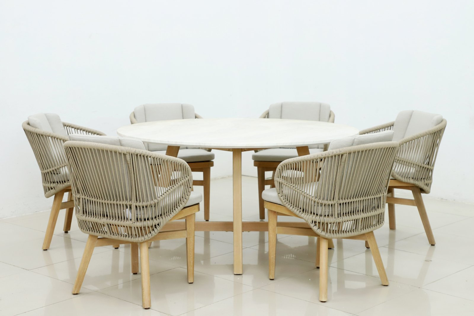 Эксклюзивная коллекция Mali приглашает вас окунуться в стиль и безмятежность на открытом воздухе. Большой обеденный стол, рассчитанный на 6 персон, выполнен из эвкалипта, круглая столешница - из искусственного камня Travertine. Он создан для незабываемых моментов на свежем воздухе.