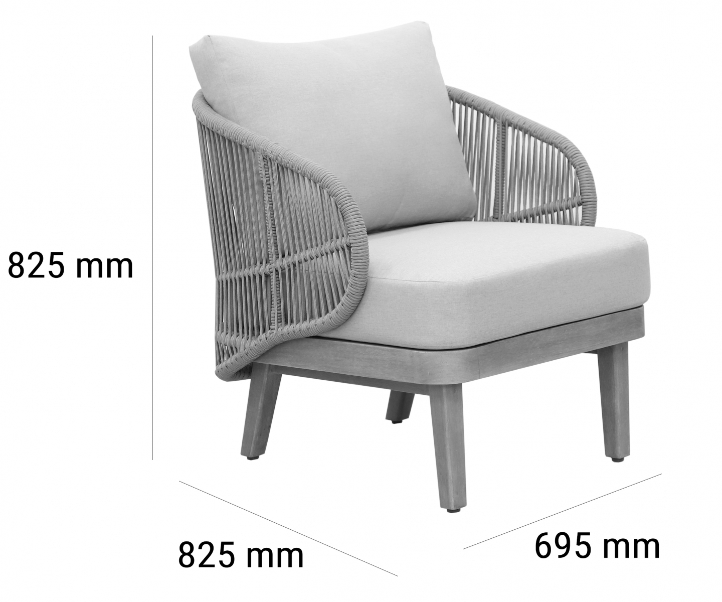 Эксклюзивная коллекция Mali приглашает вас окунуться в стиль и безмятежность на открытом воздухе. Кресла, вдохновленные побережьем, имеют прочный алюминиевый каркас, оплетенный роупом, очаровательные ножки из эвкалипта и мягкие, удобные подушки, предназначенные для круглогодичного отдыха на открытом воздухе и развлечений.