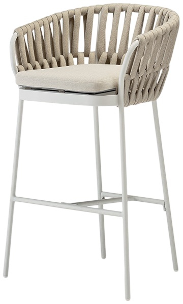 Уличное полубарное кресло Soho выполнено из окрашенного алюминия со спинкой, покрытой плетением акрилового каната, который создает красивый рисунок. Сиденье укомплектовано съемной подушкой из олефина с набивкой из быстросохнущей пены. Это полубарное кресло идеально адаптируется к современным частным и коммерческим пространствам: кафе, барам, ресторанам.