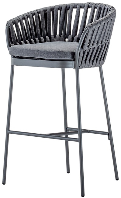 Уличное полубарное кресло Soho выполнено из окрашенного алюминия со спинкой, покрытой плетением акрилового каната, который создает красивый рисунок. Сиденье укомплектовано съемной подушкой из олефина с набивкой из быстросохнущей пены. Это полубарное кресло идеально адаптируется к современным частным и коммерческим пространствам: кафе, барам, ресторанам.