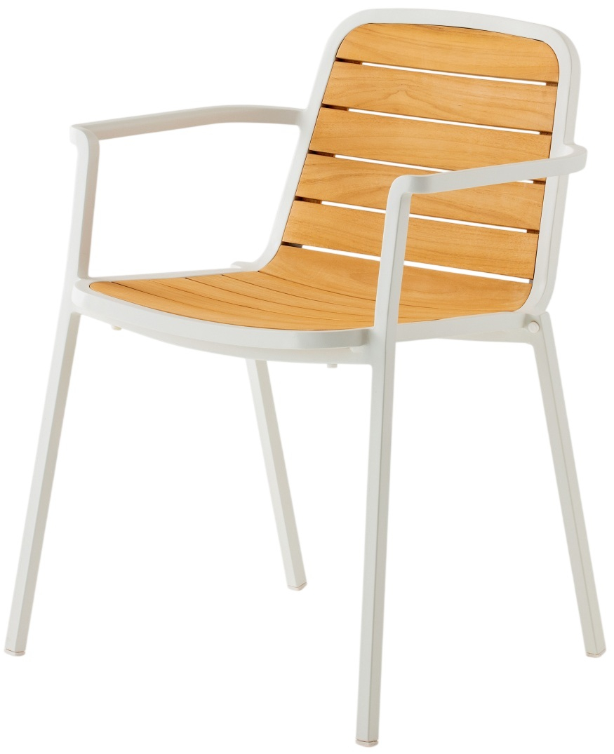 Уличное кресло Nida имеет алюминиевый окрашенный каркас с сиденьем и спинкой из планок тикового дерева. Прочное и стильное кресло подойдет для обустройства обеденных зон на открытых пространствах частного или общественного назначения.