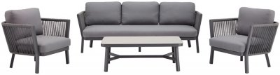 Комплект уличной мебели для отдыха Sofia обладает гармоничным стилем и разнообразными вариантами комбинирования, позволяющими наслаждаться жизнью на свежем воздухе. Коллекция, выполненная в сером цвете, состоит из разных оттенков сочетания фактуры металла, плетения из роупа и обивки, которые делают мебель намного более многослойной и легкой.