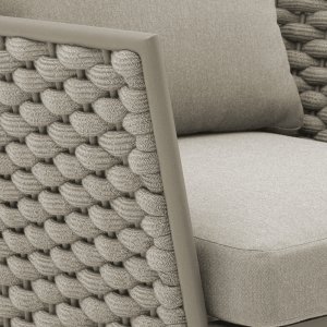 Коллекция Leon нежна и элегантна, сочетает в себе изгибы и прямые линии, обретая вкусовой баланс. Строгие линии алюминиевого каркаса с порошковым покрытием кресла Leon сочетаются с мягким плетением акрилового каната и мягкими подушками, создавая стильную и современную модель в актуальной расцветке. Каркас в приятном теплом оттенке излучает спокойствие и неторопливый темперамент. Благодаря плетению из роупа кресло становится намного оригинальнее и прочнее.