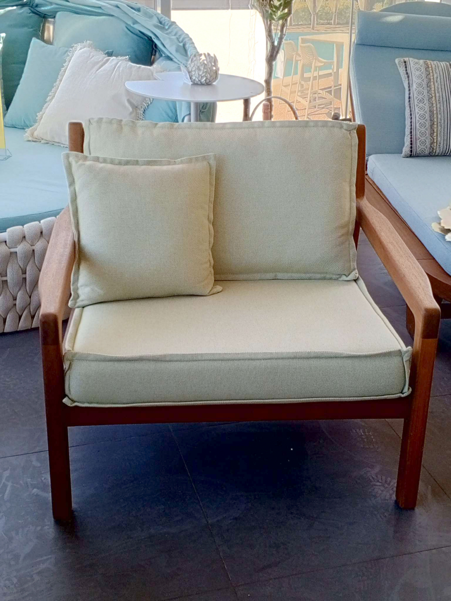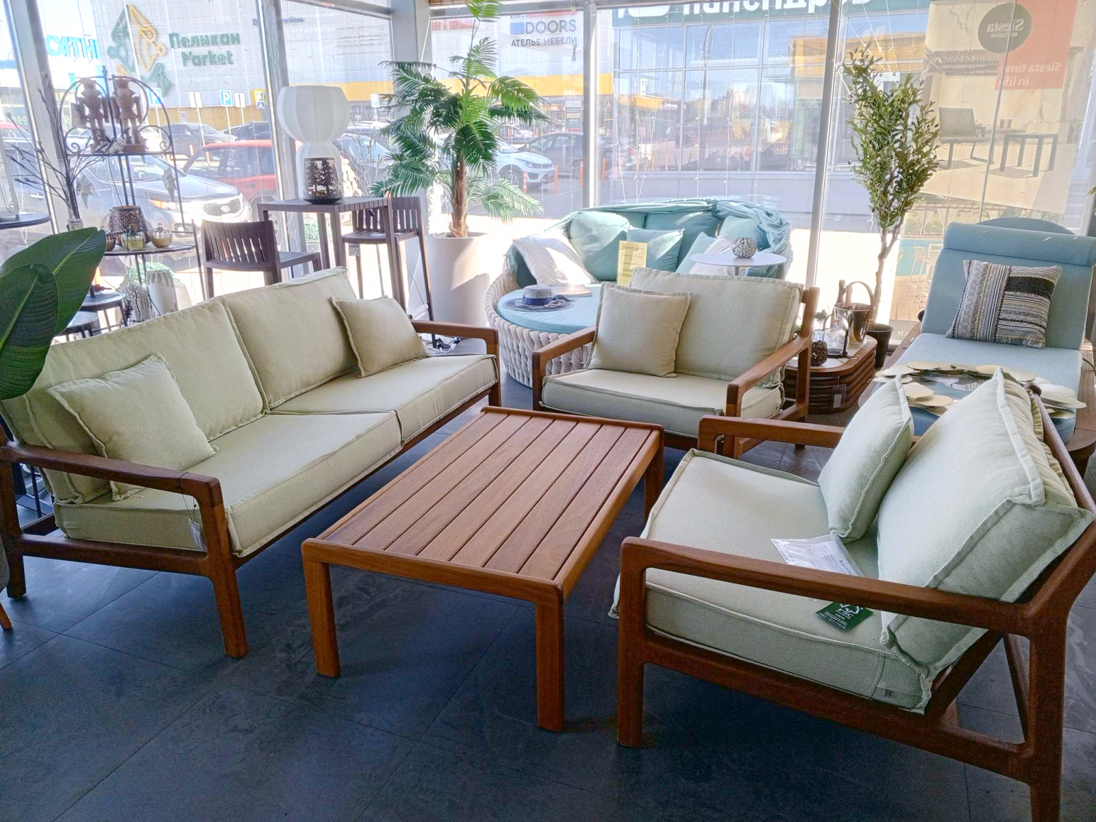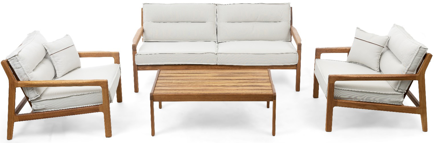 Verda представляет собой комплект, состоящий из 3-местного дивана, двух кресел и кофейного столика. Мягкие подушки обеспечивают максимальный комфорт во время отдыха, а столик делает лаунж комплект завершенным.