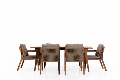Комплект мебели на 6 персон Idea имеет полностью деревянный каркас из ироко с гармоничными деталями из акриловых веревок, которые сделают вашу веранду уютной. Благодаря устойчивым к ультрафиолетовому излучению подушкам он подходит для круглогодичного использования.