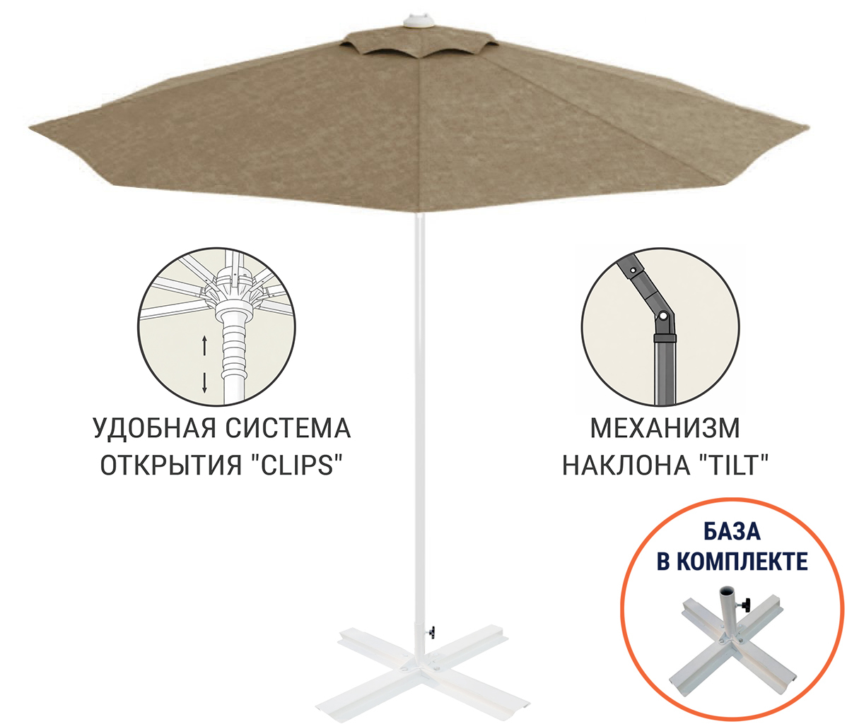 Зонт пляжный со стационарной базой Kiwi Clips&Base THEUMBRELA SEMSIYE EVI, Турция, Ø2500 мм