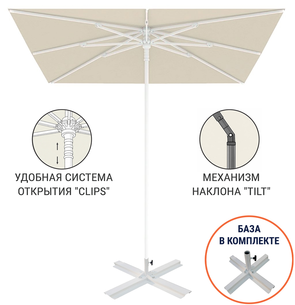 Kiwi Clips - профессиональный зонт с центральной опорой из алюминия, что обеспечивает высокую устойчивость модели. Он защитит от ярких солнечных лучей и создаст приятную затененную атмосферу в частных садах, открытых летних площадках кафе, баров и ресторанов, зоны возле бассейна.