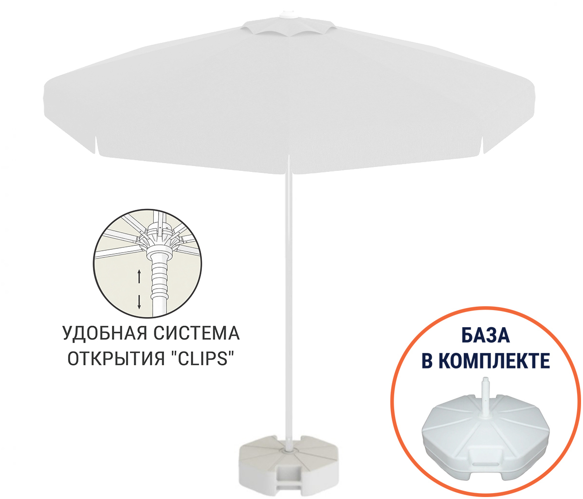 Зонт пляжный со стационарной базой Kiwi Clips&Base THEUMBRELA SEMSIYE EVI, Турция, Ø2500 мм