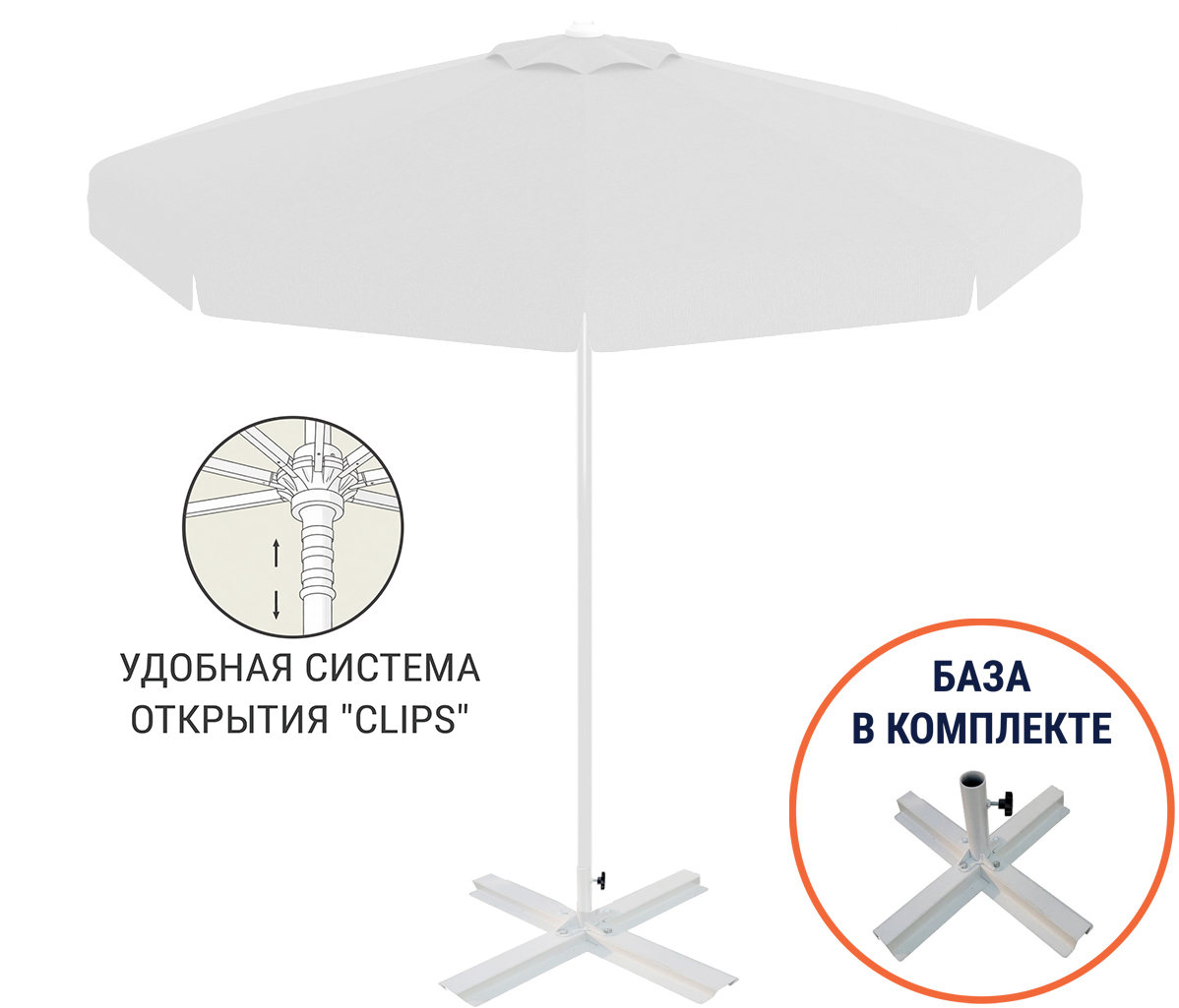 Зонт пляжный со стационарной базой Kiwi Clips&Base THEUMBRELA SEMSIYE EVI, Турция, Ø2500 мм
