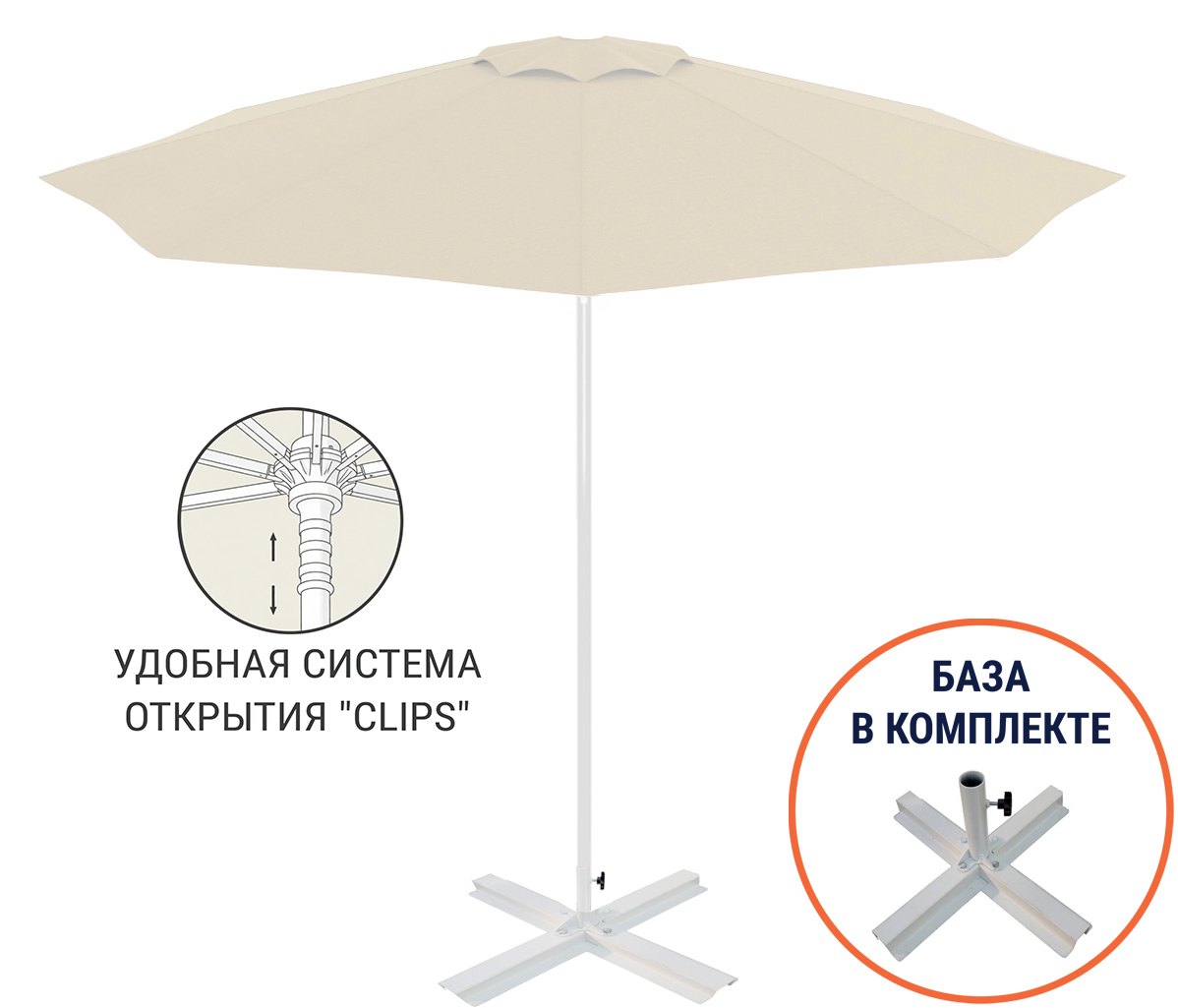 Зонт пляжный со стационарной базой Kiwi Clips&Base THEUMBRELA SEMSIYE EVI, Турция, Ø2500 мм