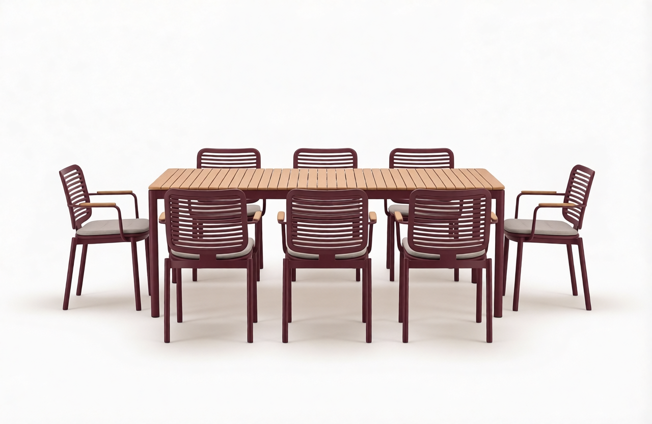 Комплект станет изысканным и элегантным дополнением к Вашему заднему двору или открытому пространству. Детализированная рама стола с ножками уникальной изогнутой формы придает ему характер и солидность. Обеденный стол Armona спроектирован и изготовлен так, чтобы выдерживать любые погодные условия. Вместе с креслами это идеальный выбор для открытых площадок кафе, ресторанов, баров или даже Вашего собственного двора, настоящее воплощение стиля и функциональности.
