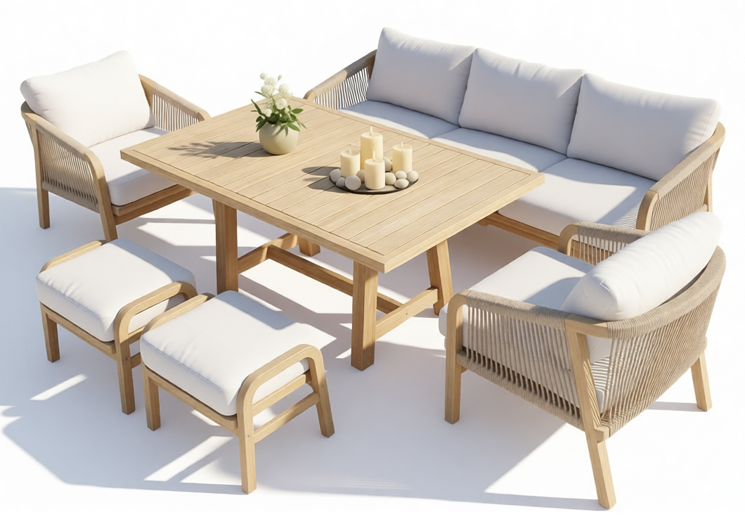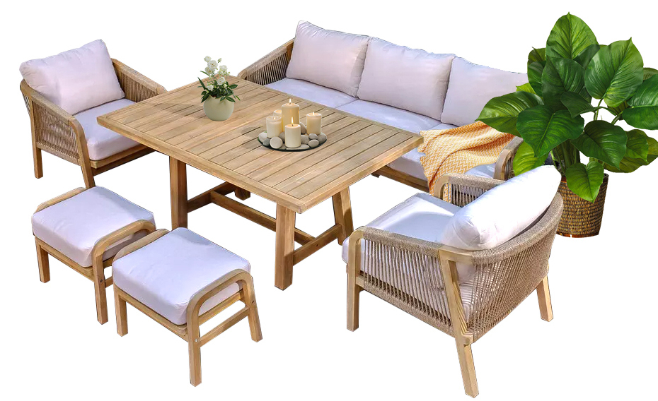 Обеденный стол Ravona изготовлен из древесины тропической АКАЦИИ (FSC), которая хорошо устойчива к атмосферным воздействиям. Цвет этой натуральной твердой древесины представляет собой натуральный цвет с мелкой текстурой, придающий древесине приятный теплый вид. Ravona - это стиль и элегантность на Вашей веранде.