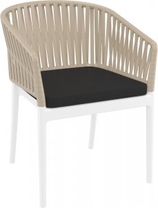 Кресло Portofino от турецкой фабрики Siesta Contract представляет собой стильное и надежное решение для уличного использования в сферах HoReCa и Contract. Выполненное из высококачественного полипропилена, армированного стекловолокном, кресло отличается исключительной прочностью и устойчивостью к воздействию внешней среды. Благодаря новейшим технологиям формования пластмасс под давлением, материал кресла устойчив к выцветанию и деформации, а нескользящие ножки обеспечивают безопасность и стабильность как внутри помещений, так и на улице. Особый акцент сделан на обволакивающей спинке, плавно переходящей в подлокотники, с 3D-эффектом плетения из плоского роупа, что придает креслу современный вид и визуально напоминает натуральное плетение, сохраняя при этом преимущества пластика.