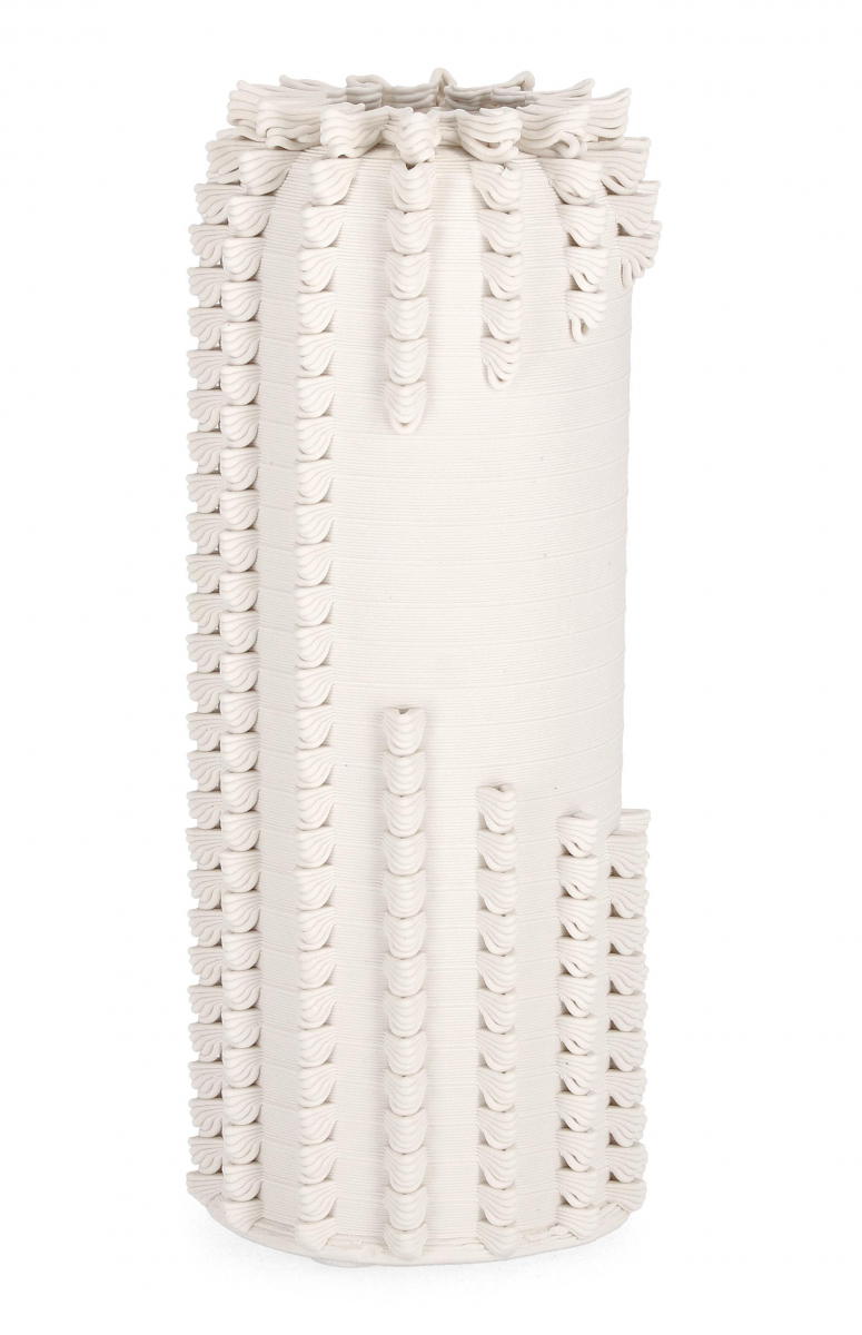 Уникальная ваза изготовлена из керамики с использованием технологии 3D-печати. Она обладает водонепроницаемым покрытием, что позволяет использовать ее для цветов или других декоративных элементов.