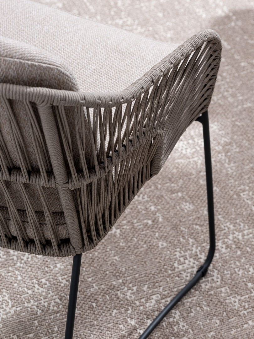 Кресло Carles - это современный предмет мебели интересной формы и цвета, благодаря которому он оживит любое пространство, в котором находится. Кресло привлекает внимание и станет прекрасным дополнением столовой зоны на открытом пространстве. Оно изготовлено из стали и имеет мягкие подушки на сиденье и спинке. Подлокотники и продуманная конструкция гарантируют комфорт во время использования. Плетеный корпус придает креслу удивительный характер. Эргономичная форма кресла способствует более длительному отдыху. Ножки-полозья обеспечивают хорошую устойчивость.