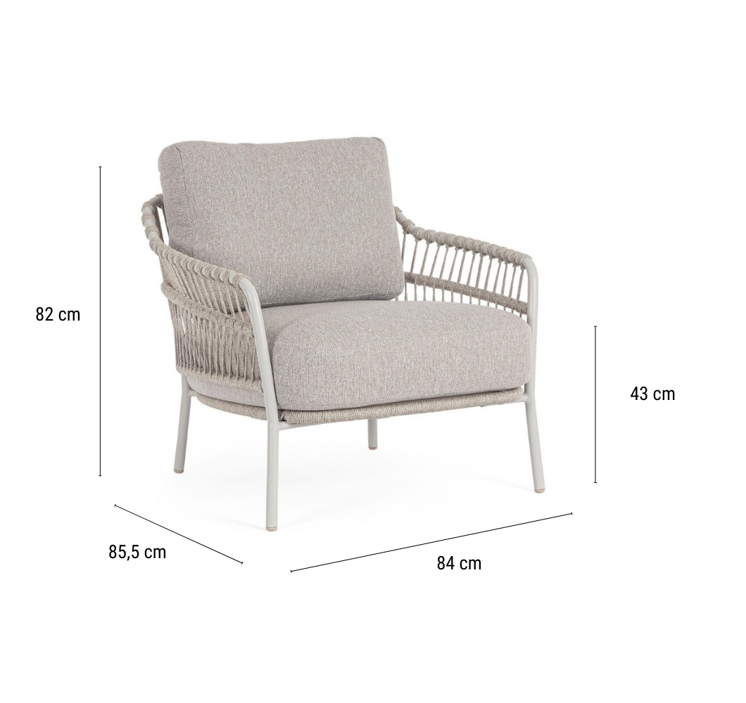 Лаунж кресло Talaia - это современный предмет мебели интересной формы и цвета, благодаря которому он оживит любое пространство, в котором находится. Кресло привлекает внимание и станет прекрасным дополнением гостиной зоны на открытом пространстве. Оно изготовлено из стали и имеет мягкие подушки на сиденье и спинке. Подлокотники и продуманная конструкция гарантируют комфорт во время использования. Плетеный корпус придает креслу удивительный характер. Ножки обеспечивают хорошую устойчивость.