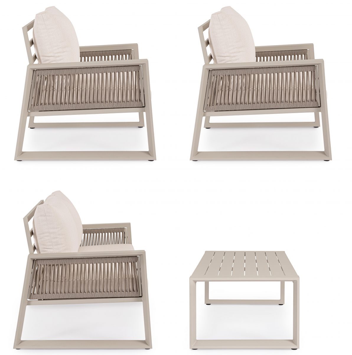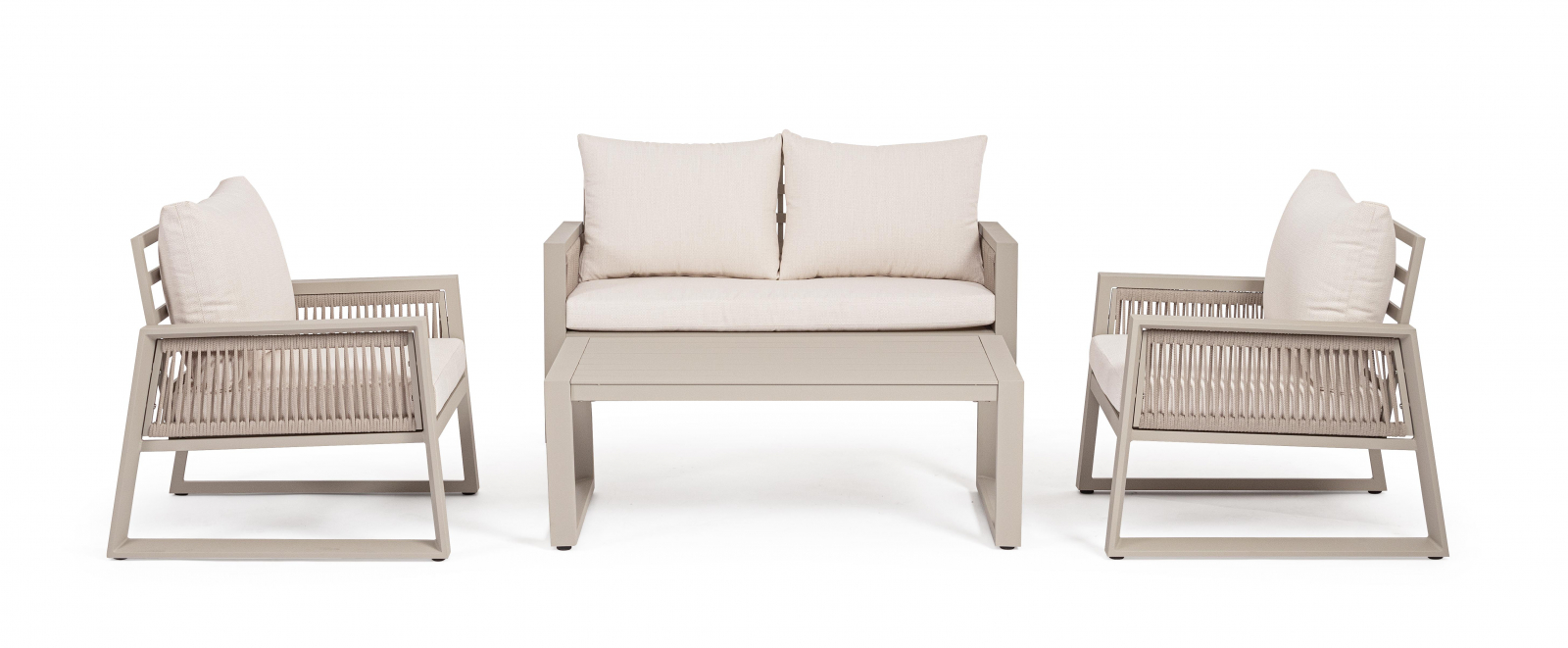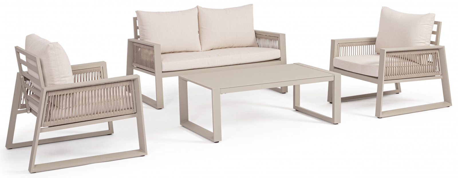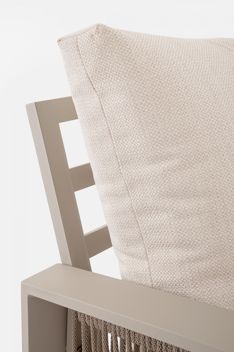 Captiva – комплект лаунж мебели из высококачественных материалов. Его мягкие подушки, а также надежный и прочный каркас делают его идеальным для обстановки лаунж зон на открытом пространстве. А благодаря лаконичному и элегантному дизайну он с легкостью вписывается в разнообразные стили площадок, придавая им современный, но в то же время теплый характер.