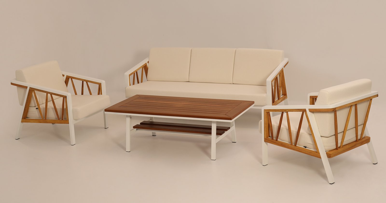 Этот комплект создан для тех, кто ценит качество, комфорт и современный дизайн. Легкий, но прочный алюминиевый каркас обеспечивает долговечность, а теплая и благородная древесина ироко придает комплекту изысканный вид и природную красоту.