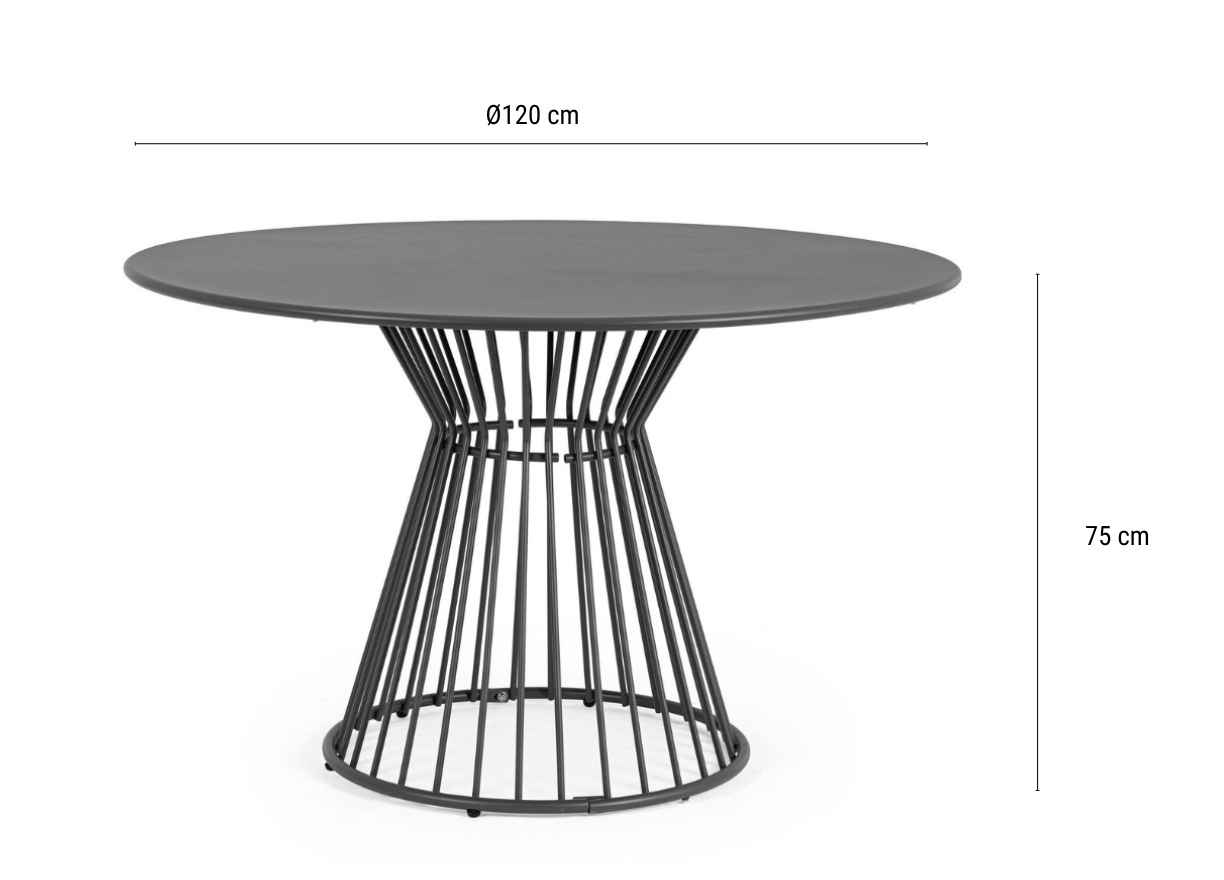 Металлический обеденный стол Austin с круглой столешницей станет украшением любого открытого пространства. Дизайн стола сочетает в себе ажурную основу в виде песочных часов из тонких стальных прутьев и большую стальную столешницу. Благодаря конструкции модель выглядит легкой и воздушной и прекрасно выполнит свою функцию на кухне, в столовой и гостиной.
