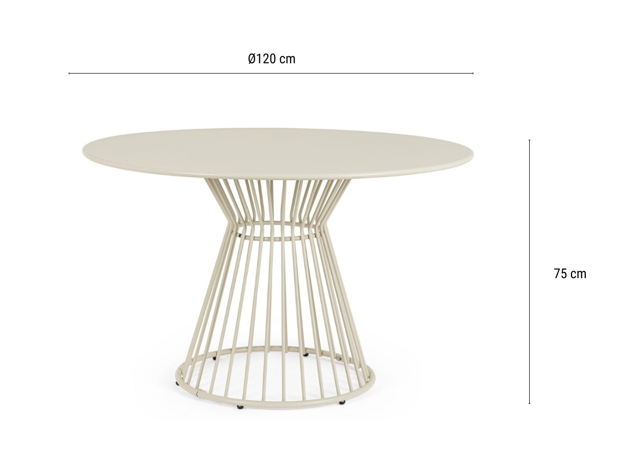 Металлический обеденный стол Austin с круглой столешницей станет украшением любого открытого пространства. Дизайн стола сочетает в себе ажурную основу в виде песочных часов из тонких стальных прутьев и большую стальную столешницу. Благодаря конструкции модель выглядит легкой и воздушной и прекрасно выполнит свою функцию на кухне, в столовой и гостиной.