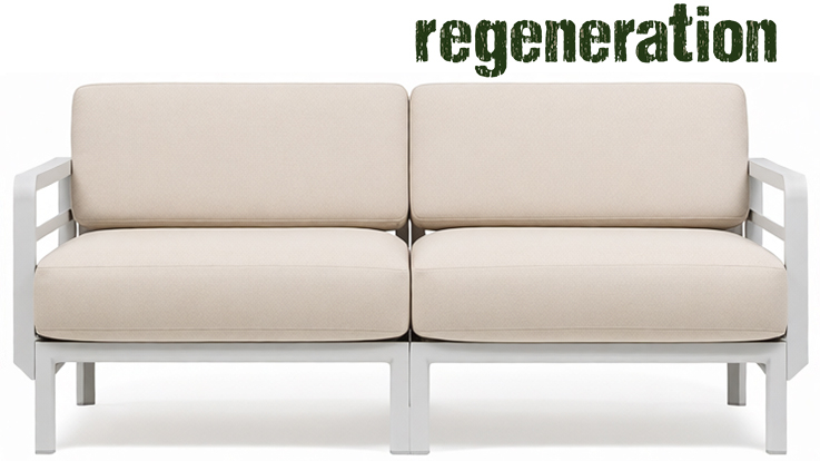 Изысканный, эстетически привлекательный дизайн: чистые и сбалансированные линии развиваются горизонтально, создавая ощущение глубины и длины; структура из переработанного пластика является цельной и прочной, но визуально облегченной за счет модульных треугольных секций и закругленных деталей. Большие объемы, удобное, глубокое сиденье и гибкая, гармоничная модульность.