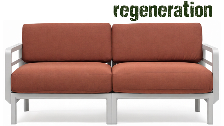 Изысканный, эстетически привлекательный дизайн: чистые и сбалансированные линии развиваются горизонтально, создавая ощущение глубины и длины; структура из переработанного пластика является цельной и прочной, но визуально облегченной за счет модульных треугольных секций и закругленных деталей. Большие объемы, удобное, глубокое сиденье и гибкая, гармоничная модульность.