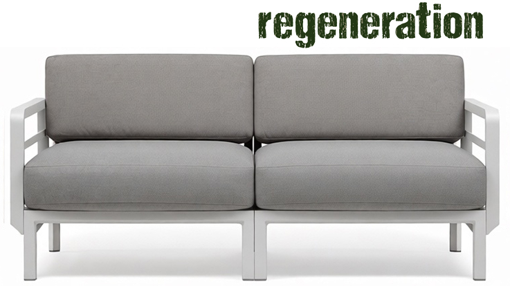 Изысканный, эстетически привлекательный дизайн: чистые и сбалансированные линии развиваются горизонтально, создавая ощущение глубины и длины; структура из переработанного пластика является цельной и прочной, но визуально облегченной за счет модульных треугольных секций и закругленных деталей. Большие объемы, удобное, глубокое сиденье и гибкая, гармоничная модульность.