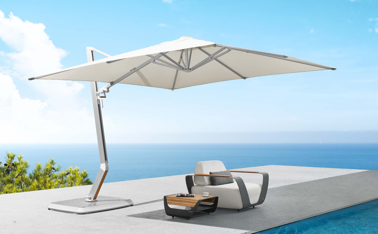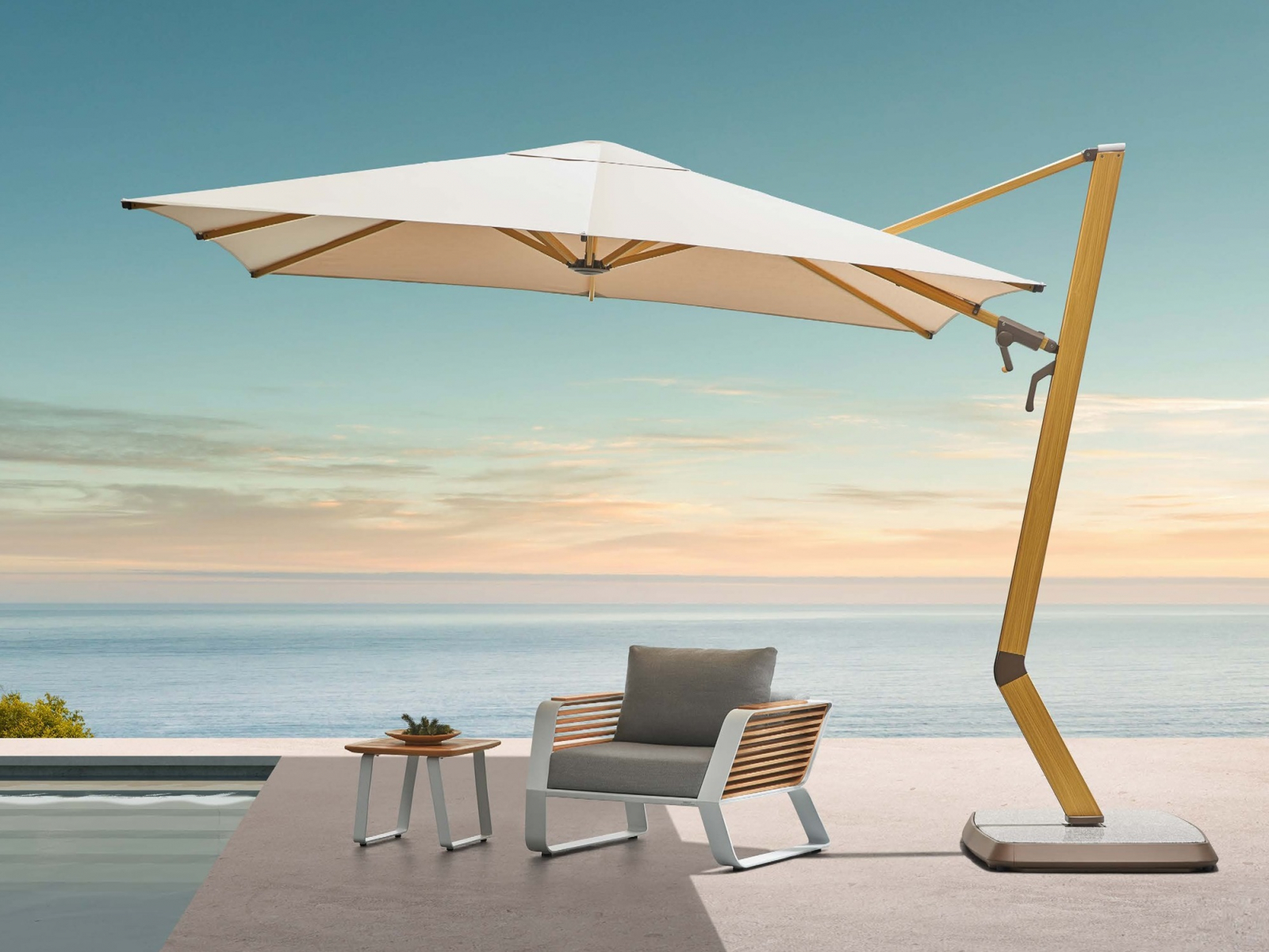 Разработанный Higold в сотрудничестве со знаменитым итальянским ателье Pininfarina, зонт Wing сочетает культовый дизайн с исключительной прочностью. Его скульптурные формы и структурная надежность превращают отдых на открытом воздухе в эстетическое удовольствие. Вдохновленный динамикой крыла, он не просто обеспечивает тень, а создает выразительный визуальный акцент.