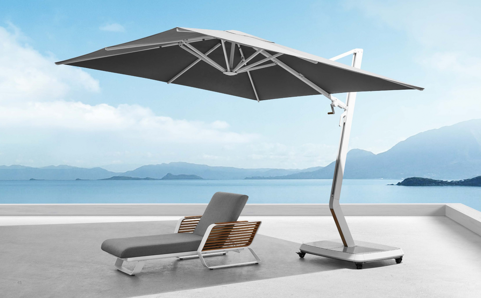 Каркас из литого алюминия гарантирует максимальную устойчивость, а усиленные ребра жесткости обеспечивают сопротивляемость ветру и осадкам. Wing - это не временное решение, а долговечный элемент outdoor-пространства, сохраняющий безупречный вид в любых условиях.