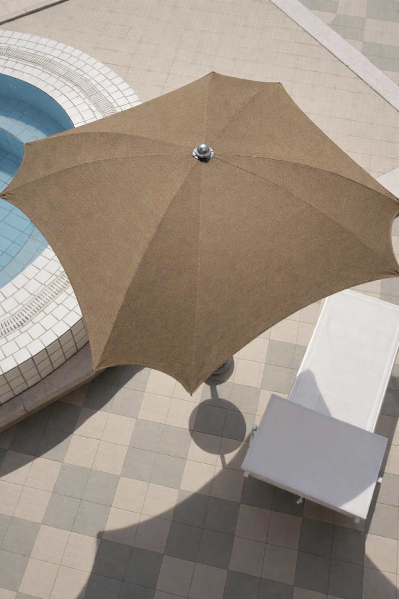 Зонт Mondrian - оригинальная модель, которая придает эстетичность пляжам, бассейнам, открытым площадкам. Благодаря своим размерам увеличивает размер затененного пространства, по сравнению с другими моделями. Зонт легко сочетается с различными моделями лежаков, шезлонгов и кресел Magnani.