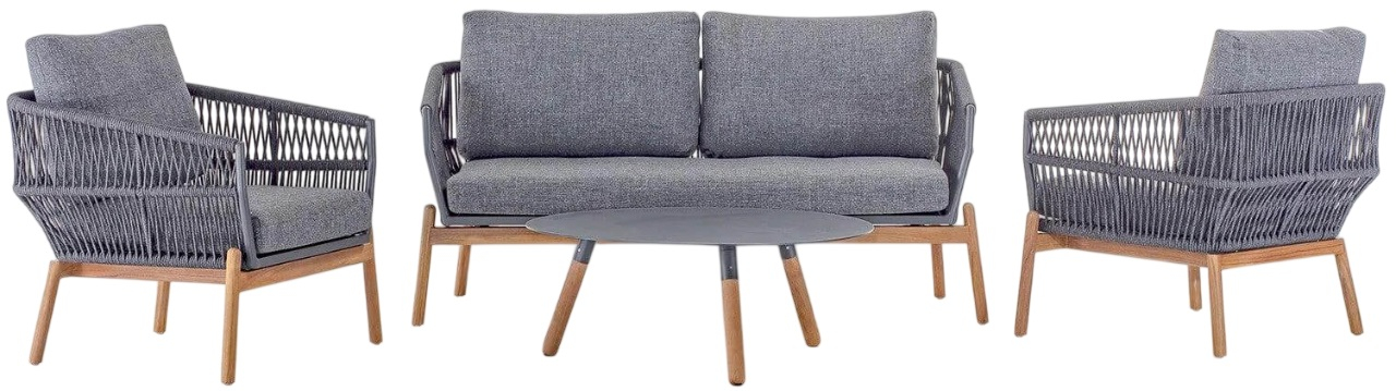Садовый комплект для отдыха Alicante сочетает в себе современный дизайн, высокий комфорт и долговечность материалов. Он состоит из двух кресел, двухместного дивана и журнального столика с алюминиевой столешницей и идеально подходит для стильных открытых пространств. Каркас выполнен из тика, рама корпуса изготовлена из алюминия и обтянута полиолефиновым канатом толщиной 9 мм. Подушки из олефина с быстросохнущим пеноматериалом обеспечивают максимальный комфорт.
