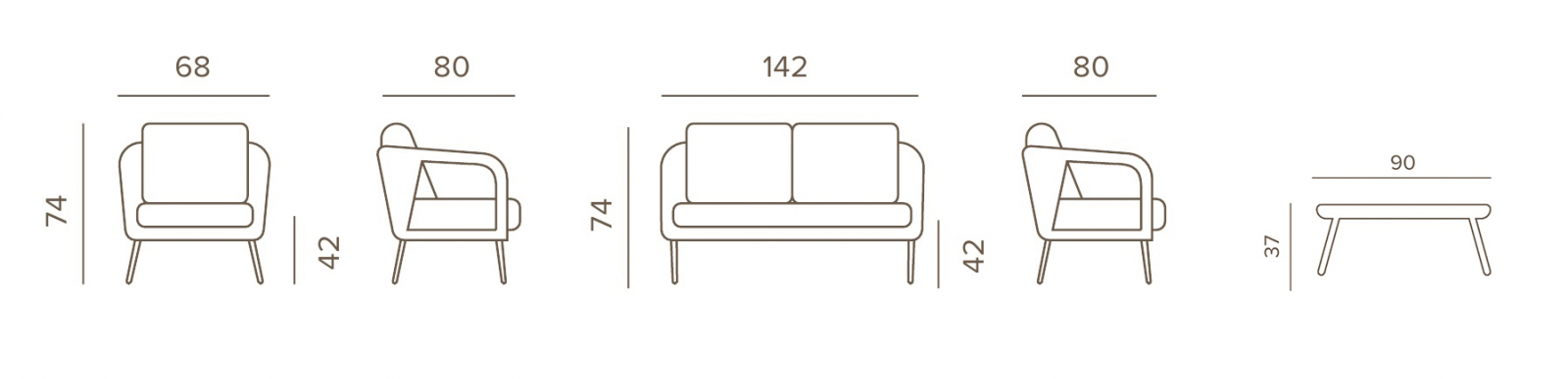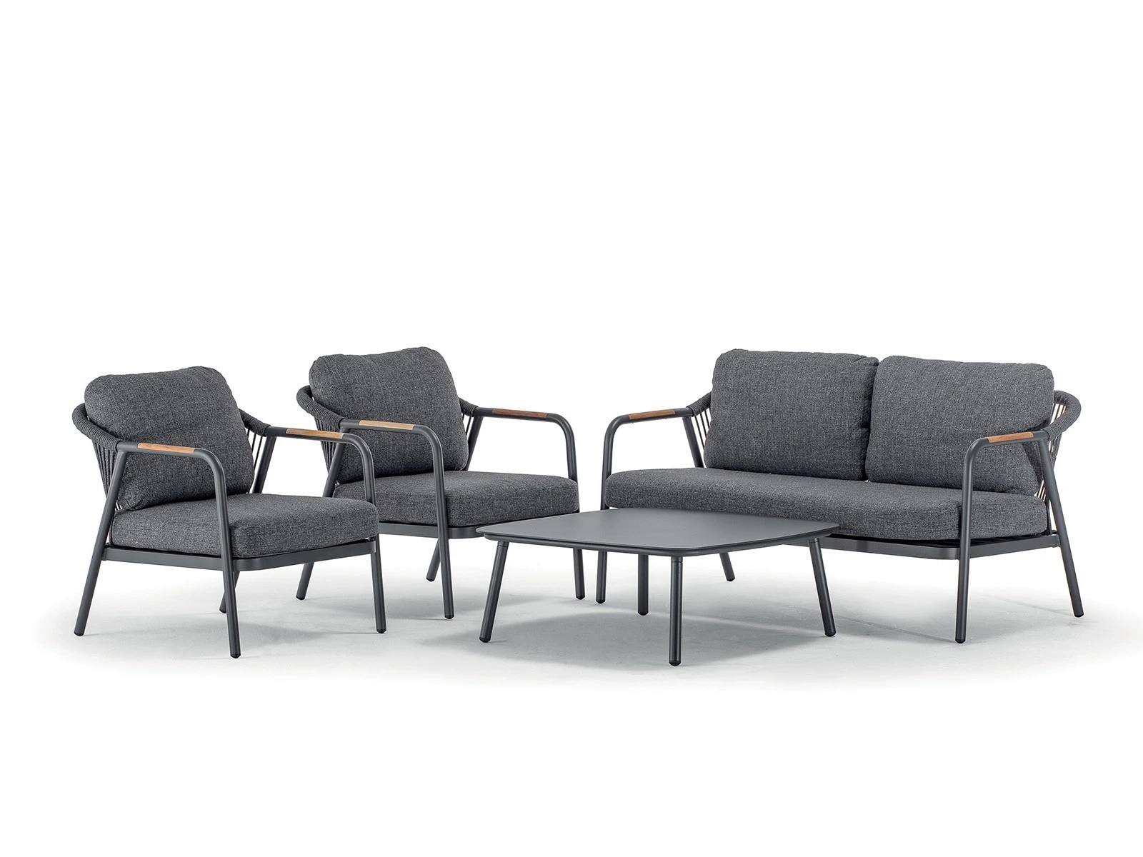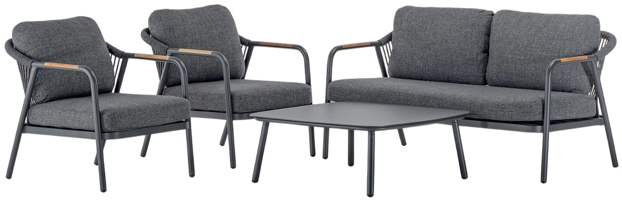 Cordoba - это комплект мебели, безупречно сочетающий в себе стиль и практичность, идеально подходящий для стильного оформления пространства на открытом воздухе. Сиденья, а именно двухместный диван и два кресла, выполнены из легкого окрашенного алюминия и украшены элегантными вставками из тикового дерева на подлокотниках – стильная деталь, которая приковывает взгляд. Эргономичная и уютная форма сиденья, выполненного из полиолефинового канатного плетения, и мягкие съемные подушки из олефиновой ткани с быстросохнущим пеноматериалом гарантируют максимальный отдых. В комплект также включен низкий квадратный столик из алюминия.